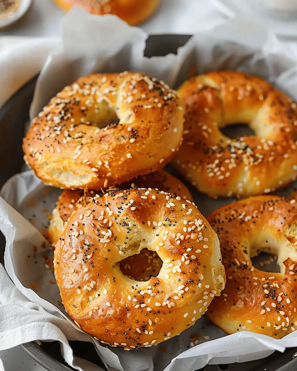 - Optional toppings: sesame seeds, poppy seeds, or everything bagel seasoning