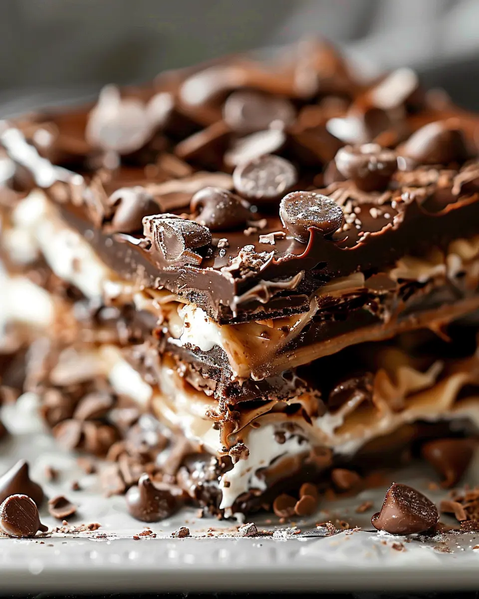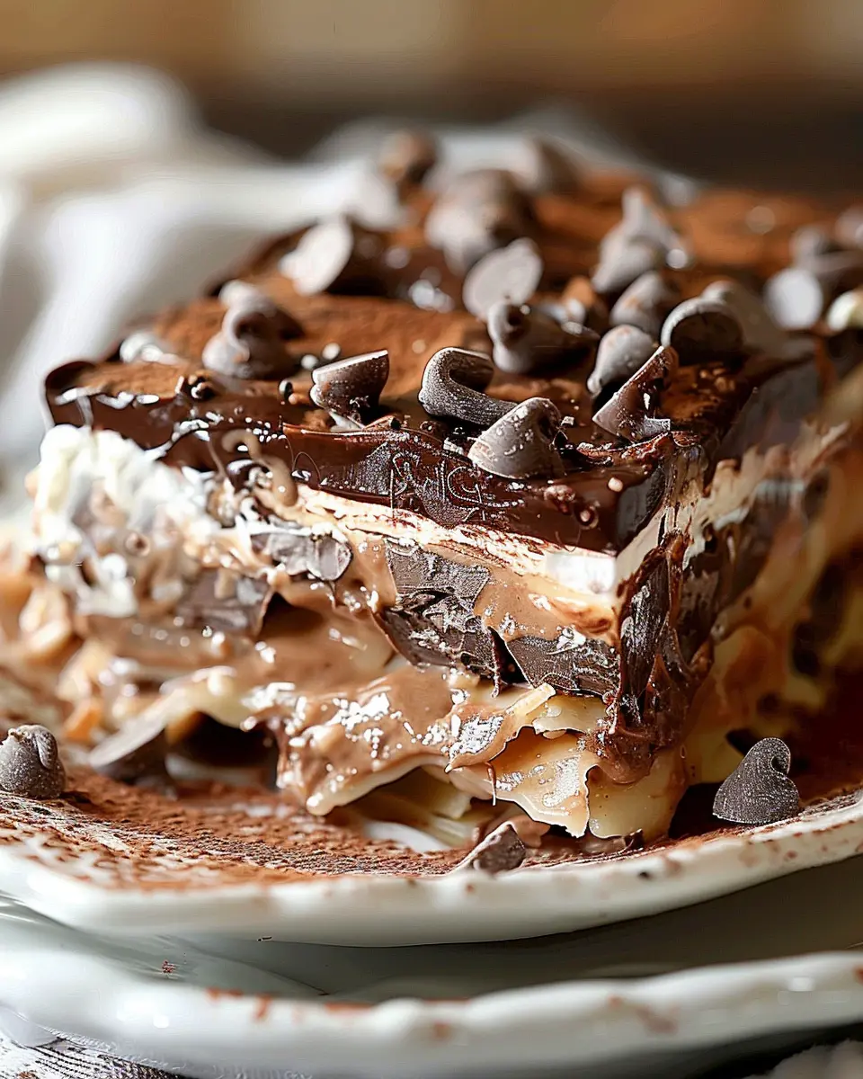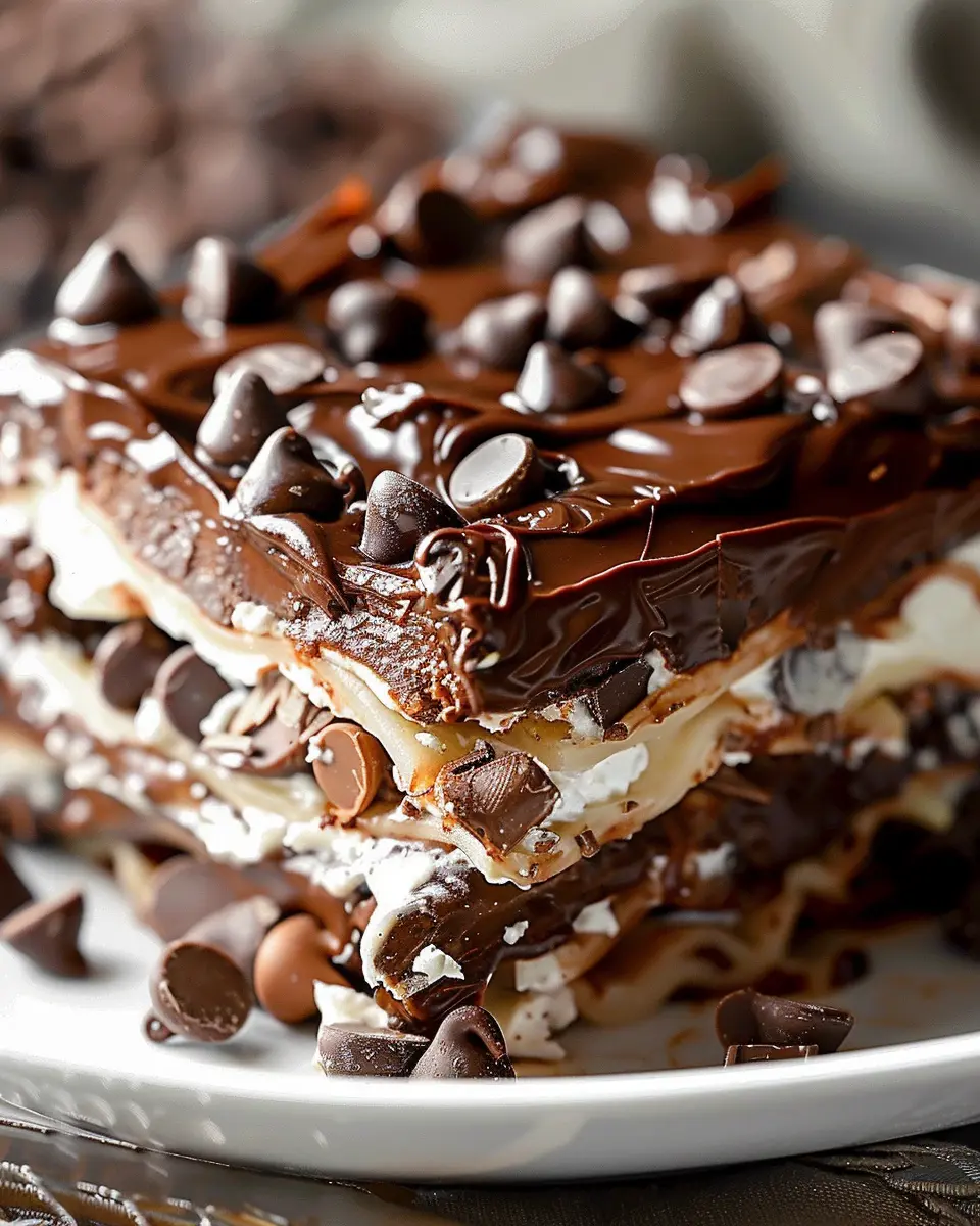 A delicious and easy-to-make dessert that layers chocolate flavors in a delightful lasagna style.