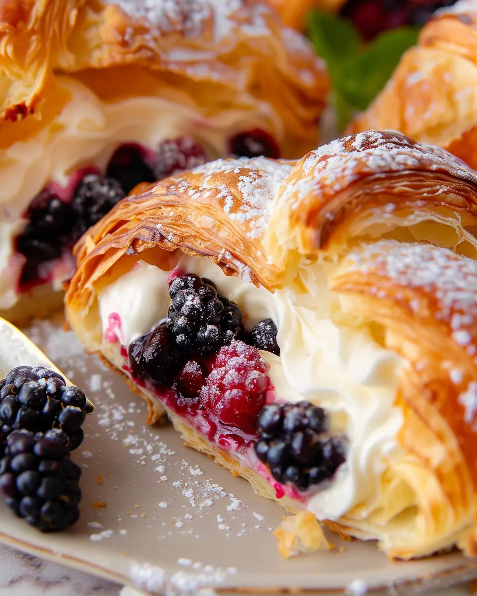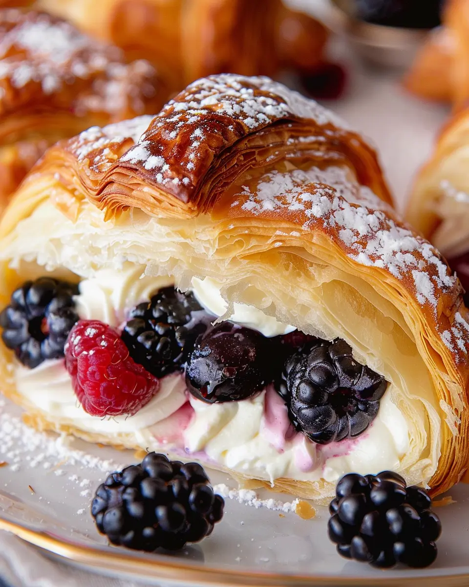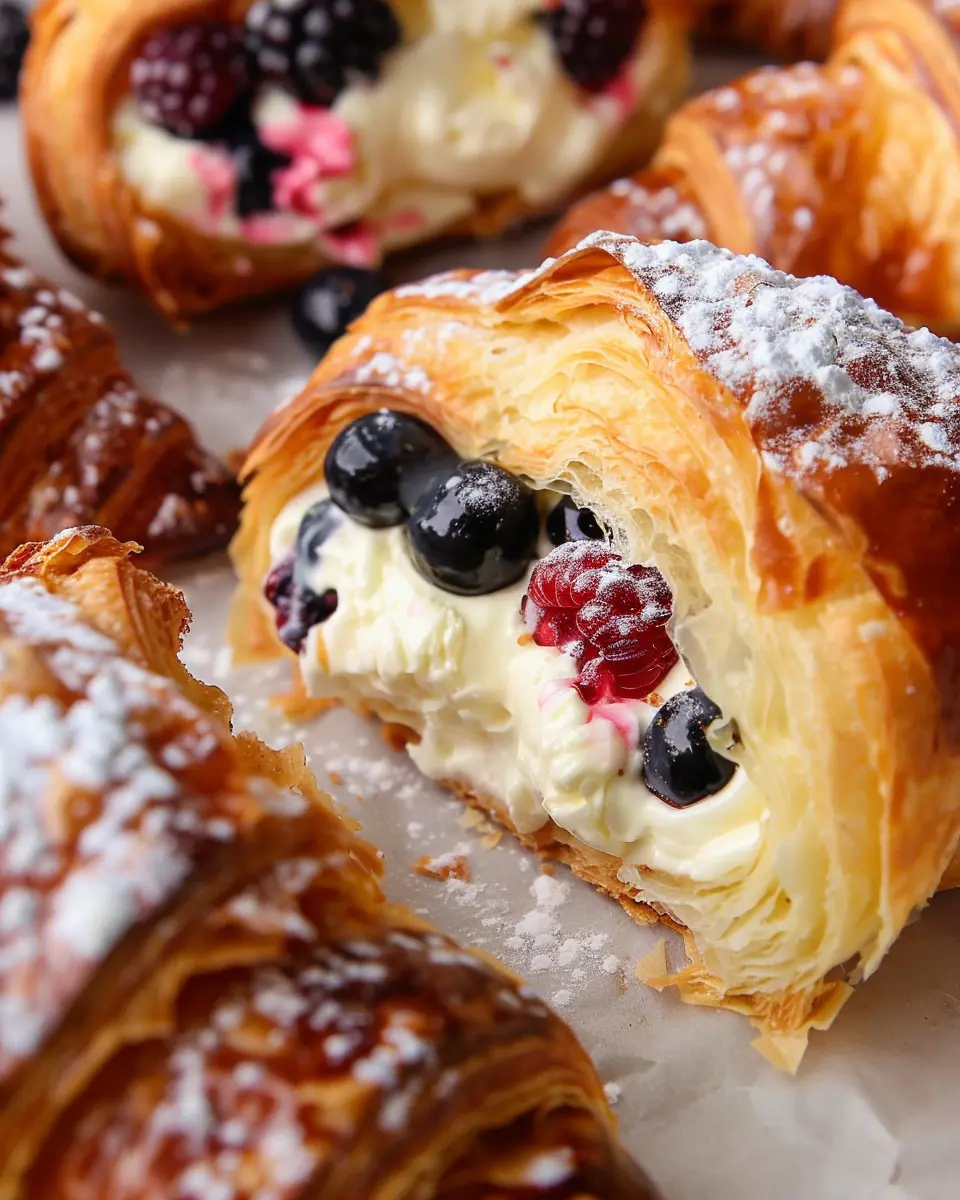Indulge in the deliciousness of berries and cream filled croissants, a perfect treat for any occasion.