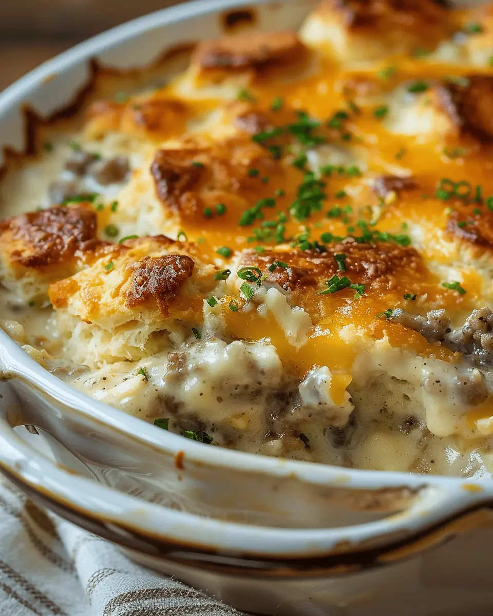 Absolutely! Making your biscuits and gravy casserole ahead of time can save you precious minutes in the morning. You can prepare the casserole the night before, cover it tightly with plastic wrap, and refrigerate it until you’re ready to bake. Just remember to remove it from the fridge about 30 minutes prior to baking to allow it to come to room temperature. This ensures even cooking and a perfectly fluffy texture.