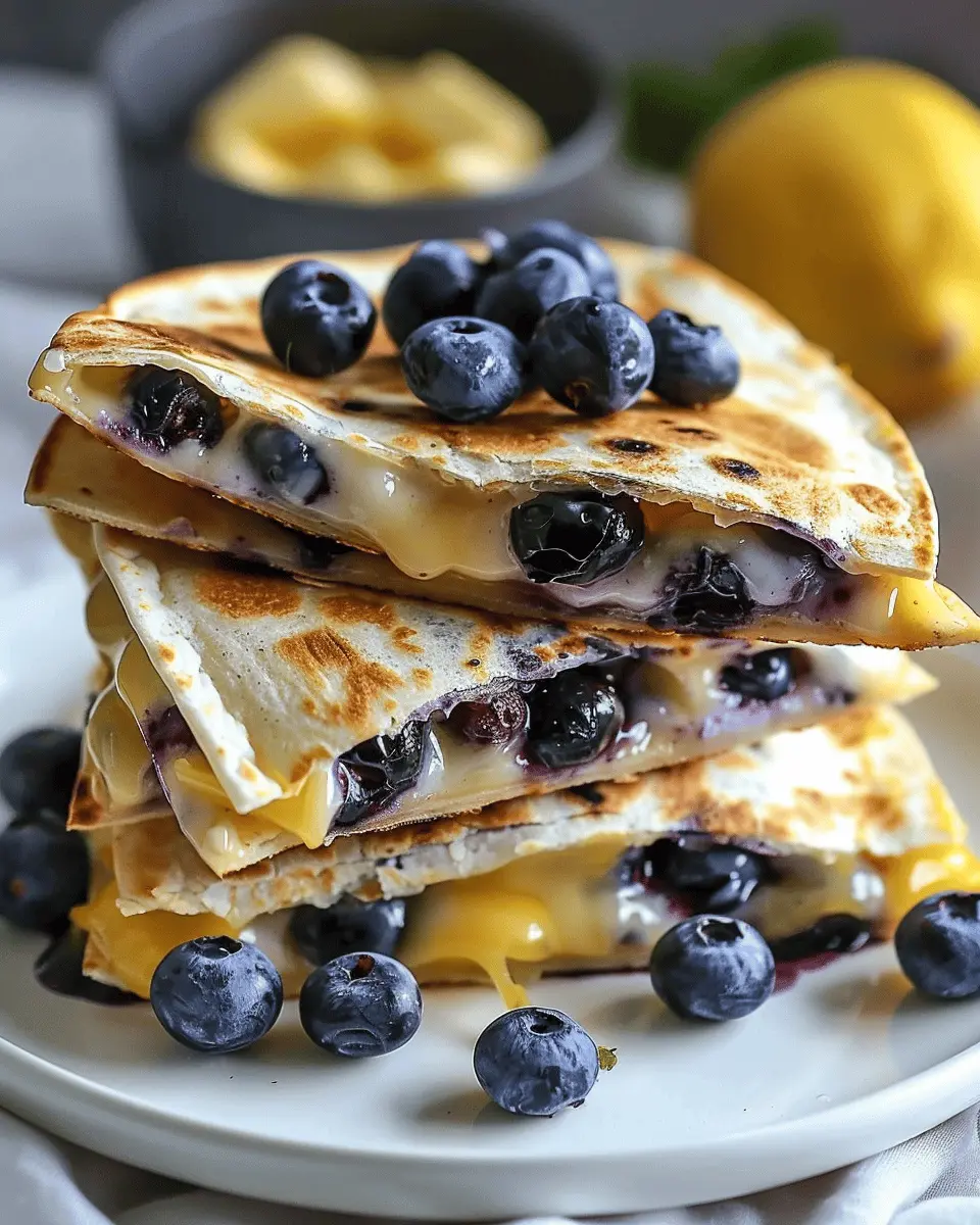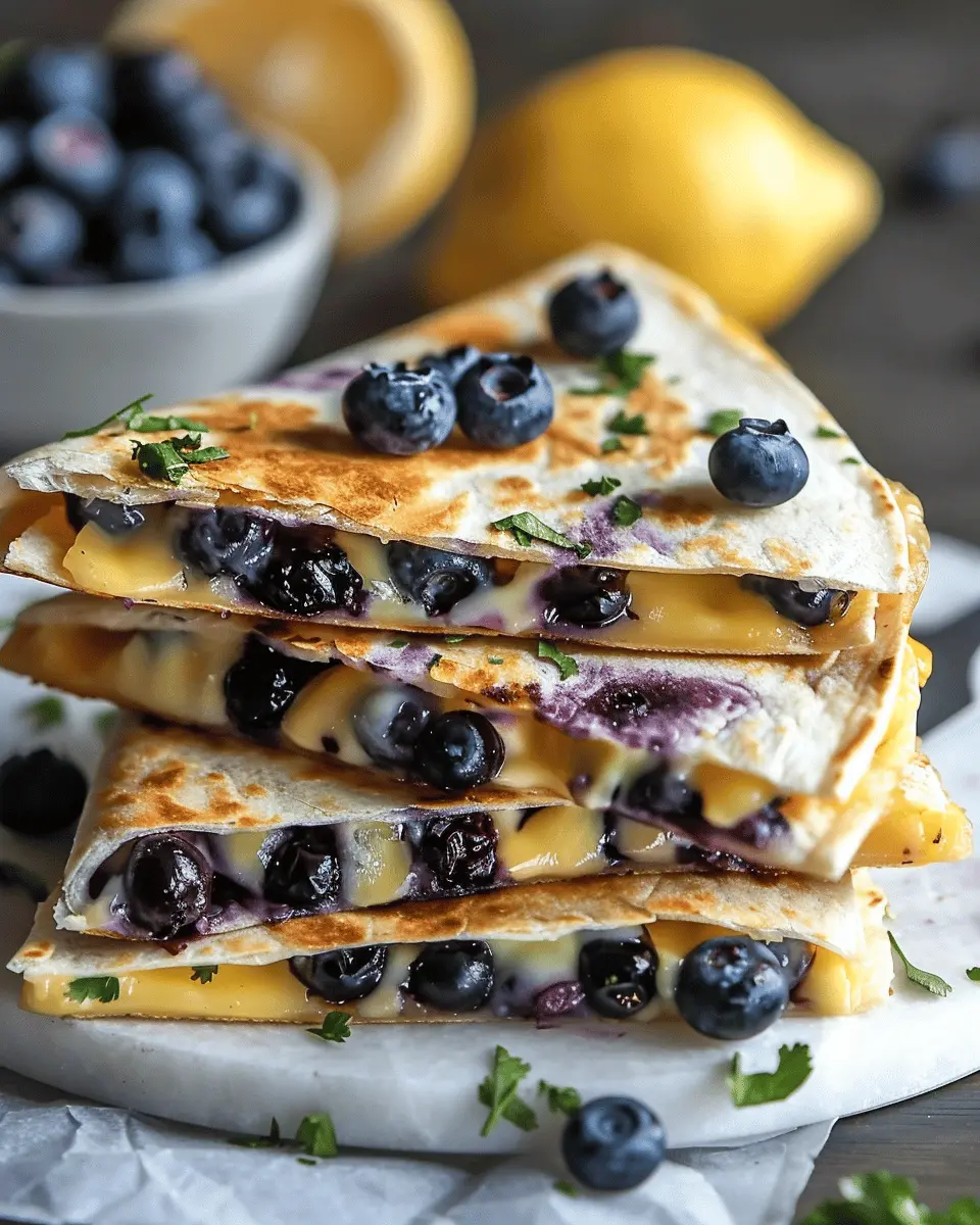 Start your day with this delightful Blueberry Breakfast Quesadilla that combines sweet blueberries and creamy cheese in a crispy tortilla.