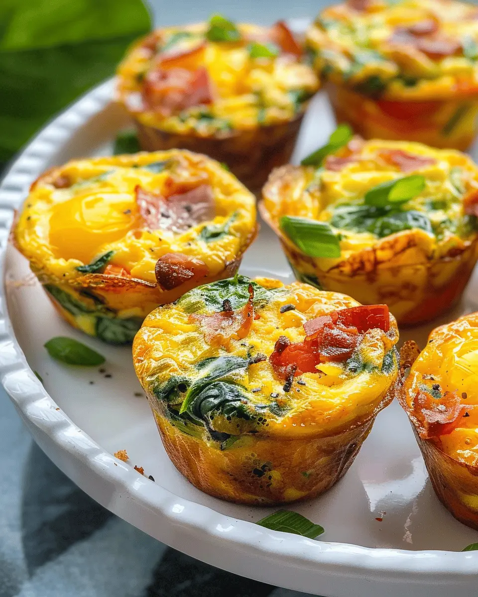 If you’re looking to add a Mediterranean twist to your breakfast egg muffins, these delightful bites featuring spinach and feta are perfect! Start by sautéing fresh spinach with a bit of olive oil and garlic, then mix in crumbled feta cheese. Combine this flavorful mix with whisked eggs, pour it into a muffin tin, and bake until golden. As a bonus, spinach is packed with nutrients like iron and vitamins A and C, making these muffins a healthy start to your day. For added flavor, you can sprinkle some fresh herbs like dill or oregano.