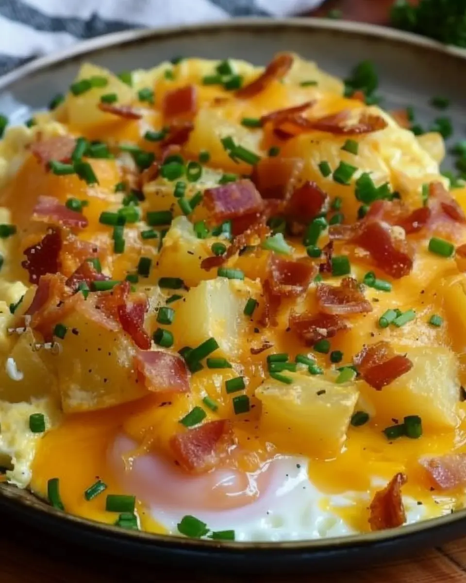 PrintCheesy Potato Egg Scramble: A Delightful Turkey Bacon Twist