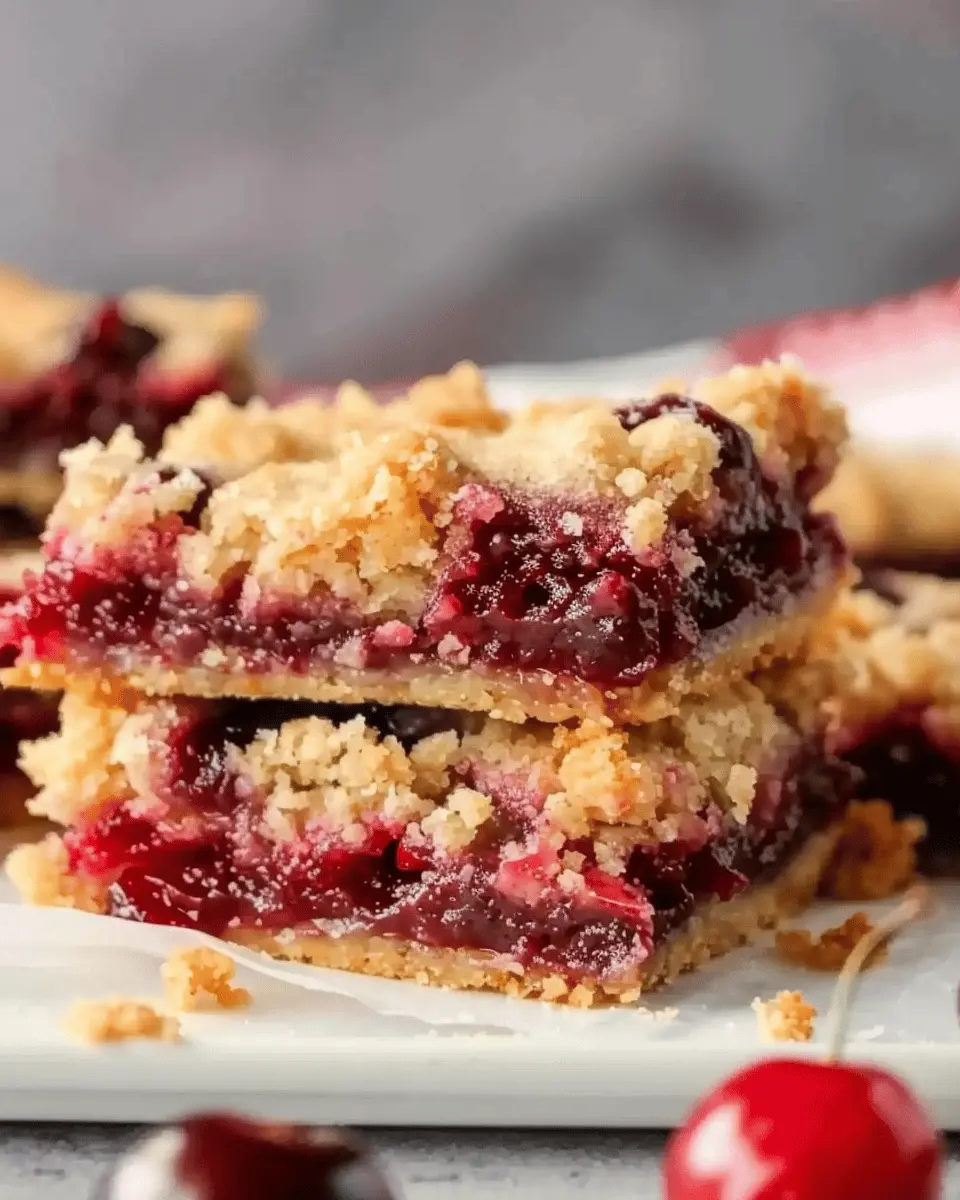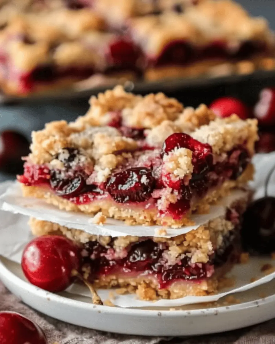 These Cherry Crumb Bars are a delightful homemade treat that combines a buttery crust with sweet cherry filling and a crumbly topping.