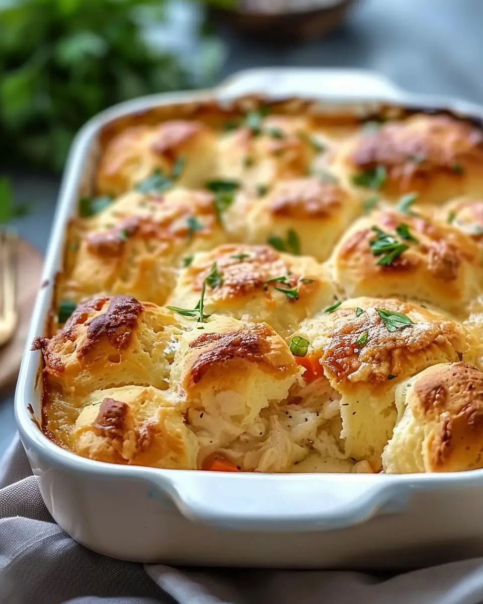 • Satisfying Comfort: The combination of creamy chicken filling and golden biscuits makes every bite a rewarding experience, perfect for cozy family nights.