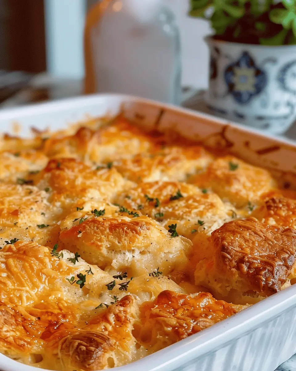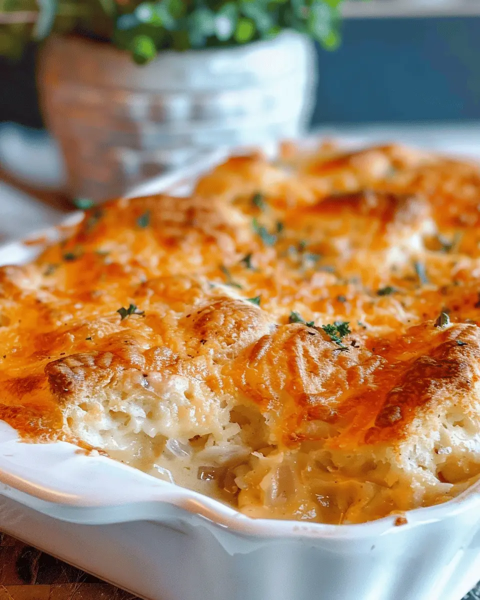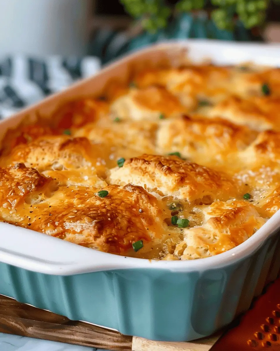 A flavorful and satisfying casserole that combines tender chicken with fluffy biscuits, making it the ultimate comfort food.