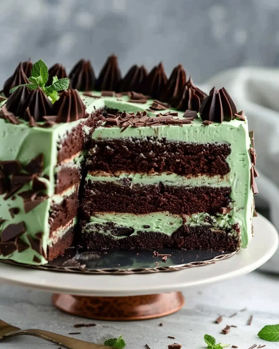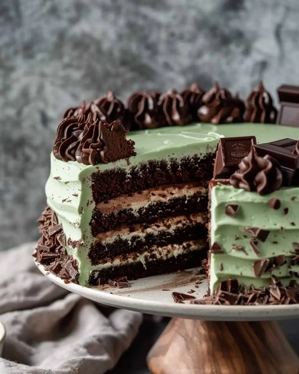 There you go! Slice into your beautifully assembled chocolate mint cake, serving it at parties, gatherings, or a cozy night in with friends. You’ll be thrilled to hear everyone rave about your baking skills!