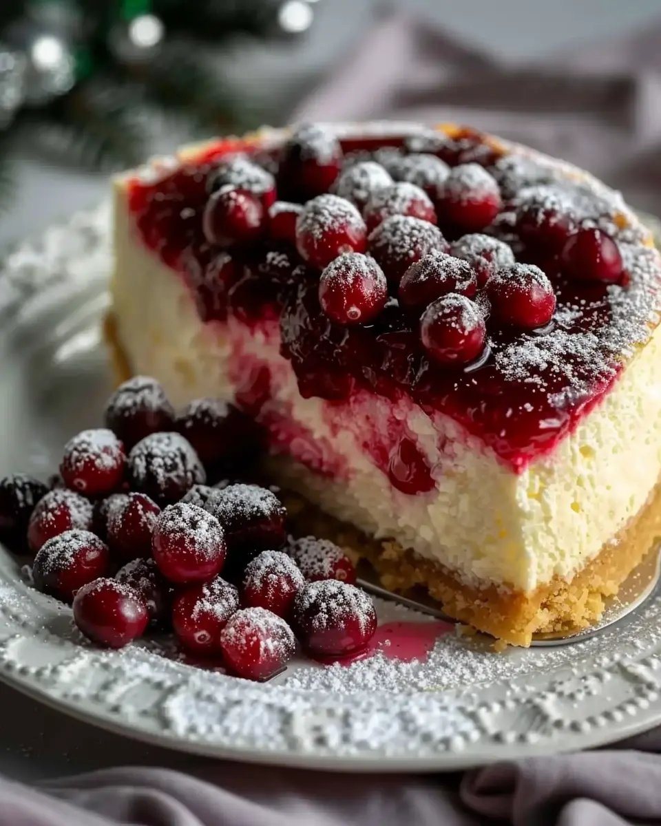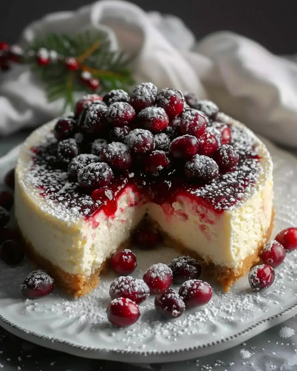 - Visual Appeal: The bright red cranberries on a creamy cheesecake create an eye-catching centerpiece.
