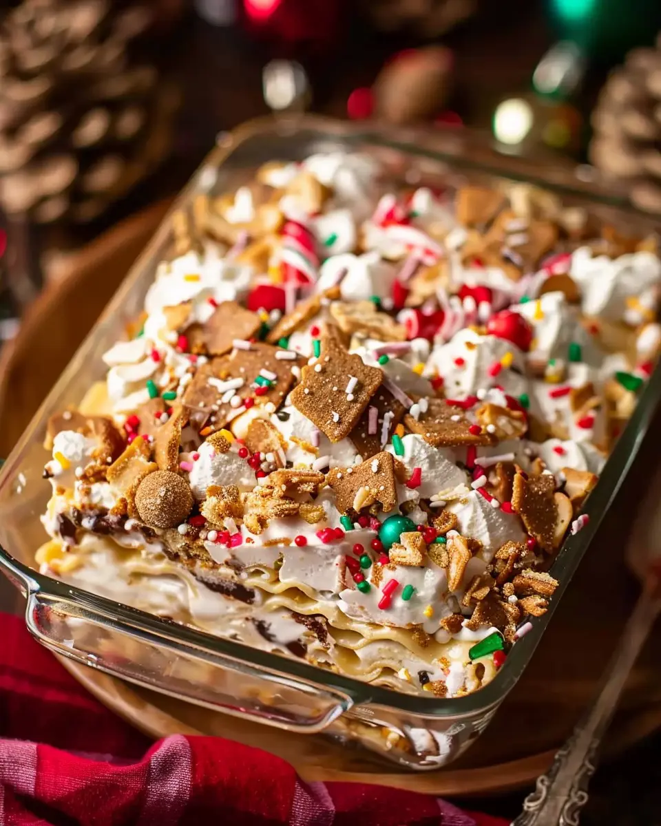 A delightful twist on traditional lasagna, this Christmas Cookie Lasagna is a festive and indulgent treat perfect for your holiday table.