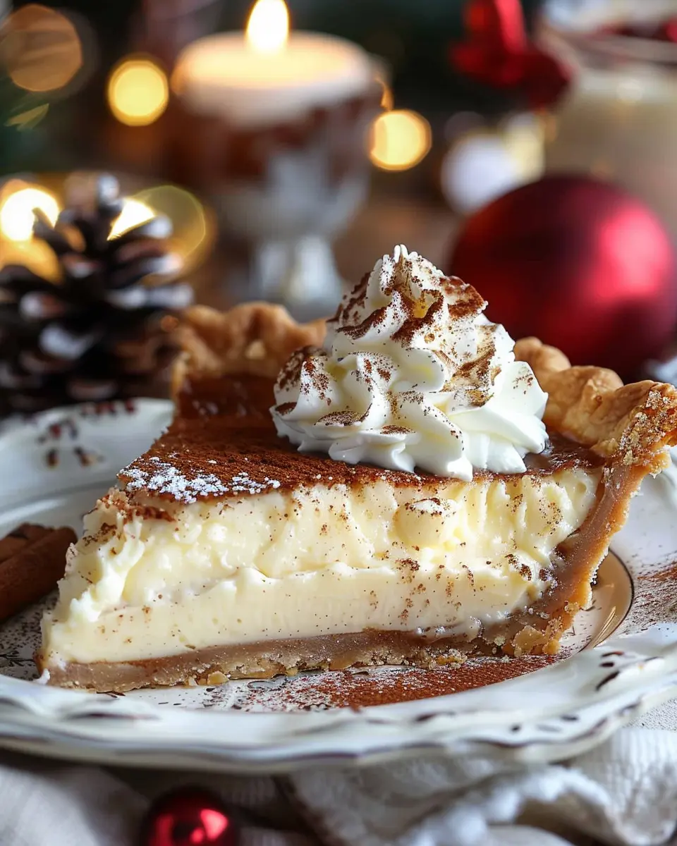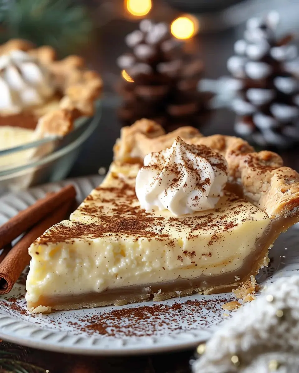 Enjoy a rich and creamy Cinnamon-Vanilla Custard Pie this Christmas Eve, perfect for a festive dessert.