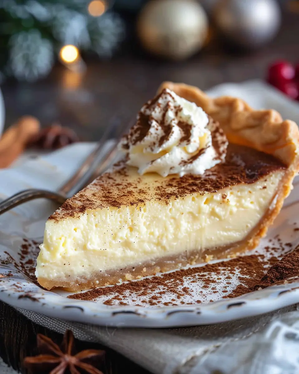 This cinnamon-vanilla custard pie is perfect for Christmas Eve, blending rich flavors into a delightful dessert.
