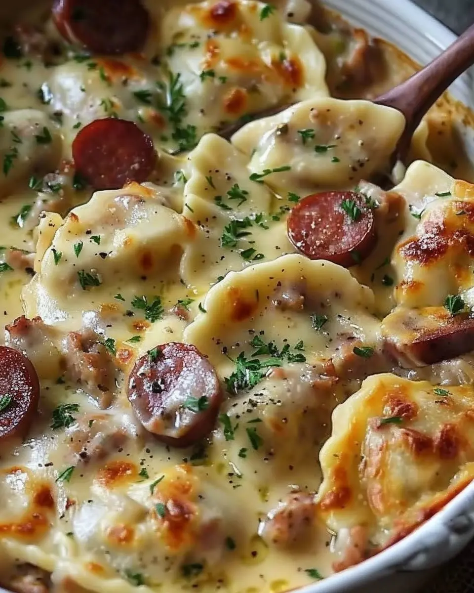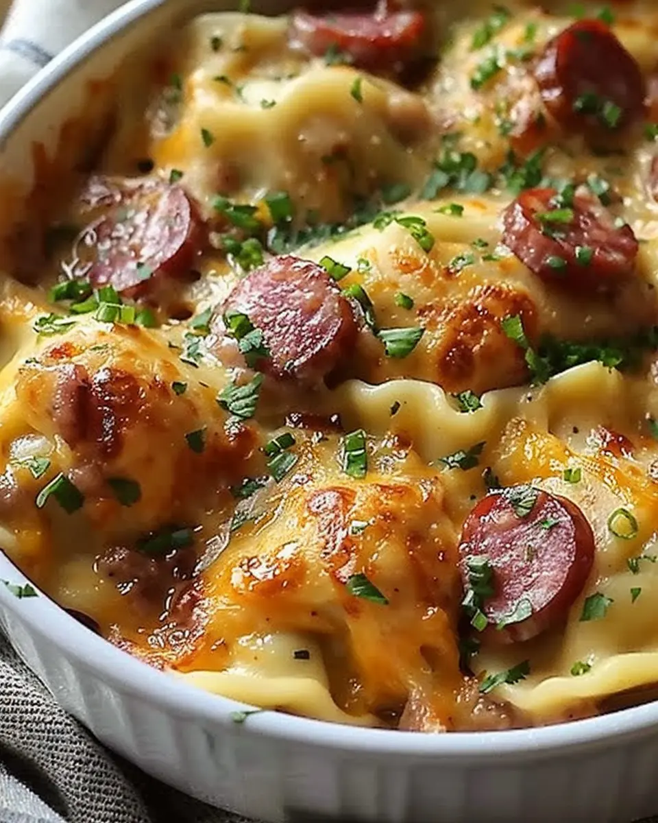 PrintClassic Crockpot Pierogi Casserole with Kielbasa Made Easy