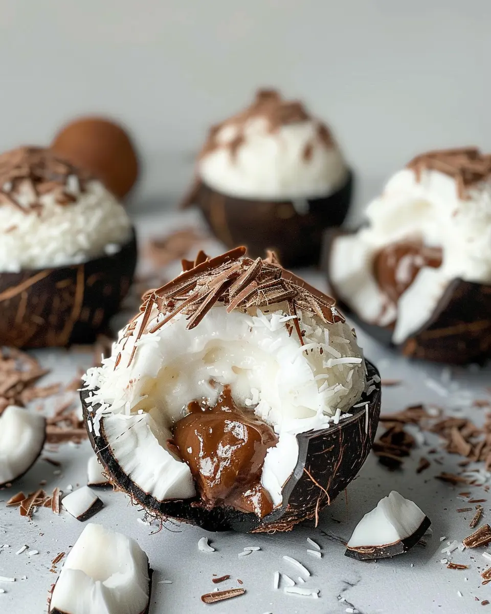 Keywords: Coconut Dome, Chocolate Spread, Dessert, Indulgent Treat