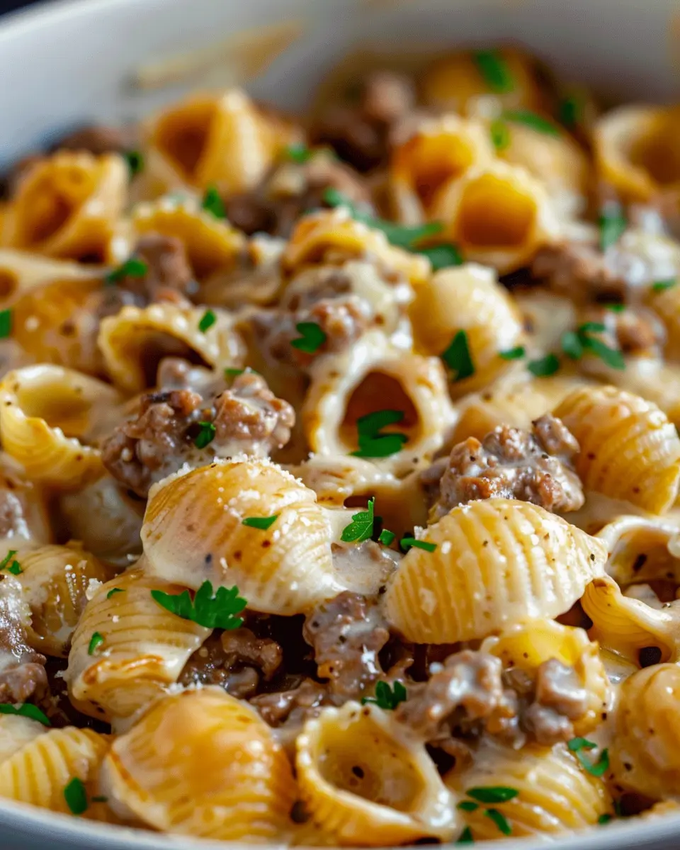 This dish doesn’t just satisfy your hunger—it becomes a cherished part of your culinary repertoire. So grab your favorite pan, and let’s dive into the recipe for creamy beef and shells! It’s comfort food that’s bound to make you feel right at home.