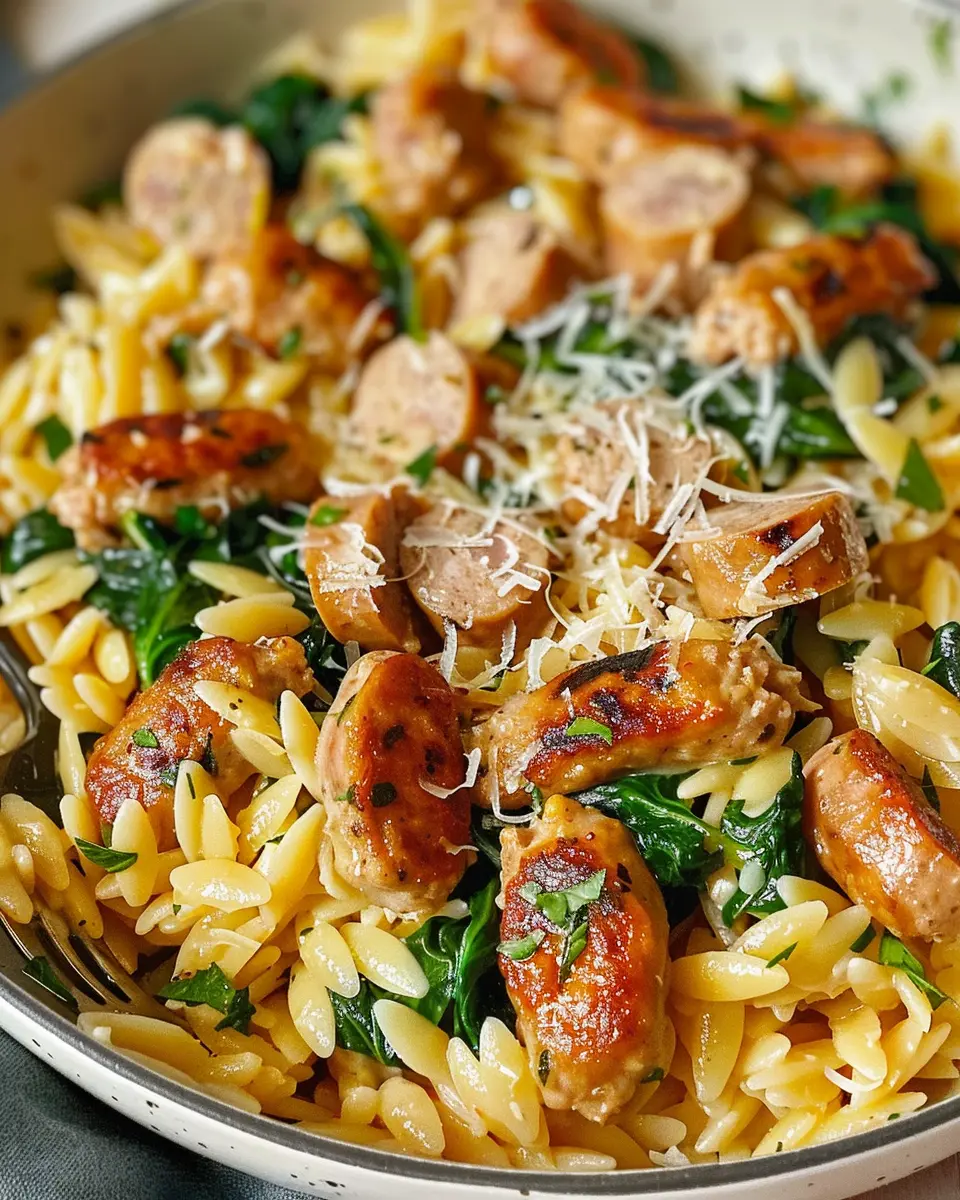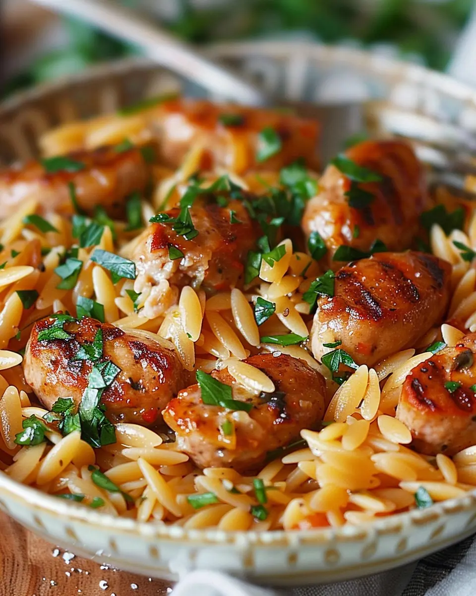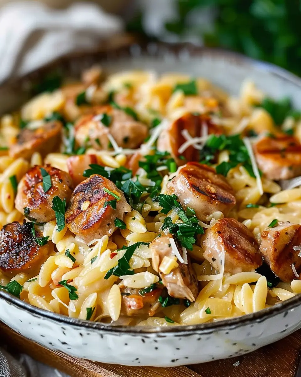 A delicious and comforting dish that combines creamy orzo with savory chicken sausage, perfect for any occasion.