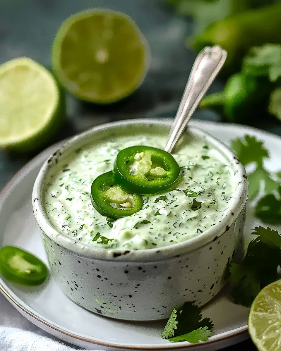 PrintCreamy Cilantro Garlic Sauce: A Delicious Twist with Jalapeños & Limes
