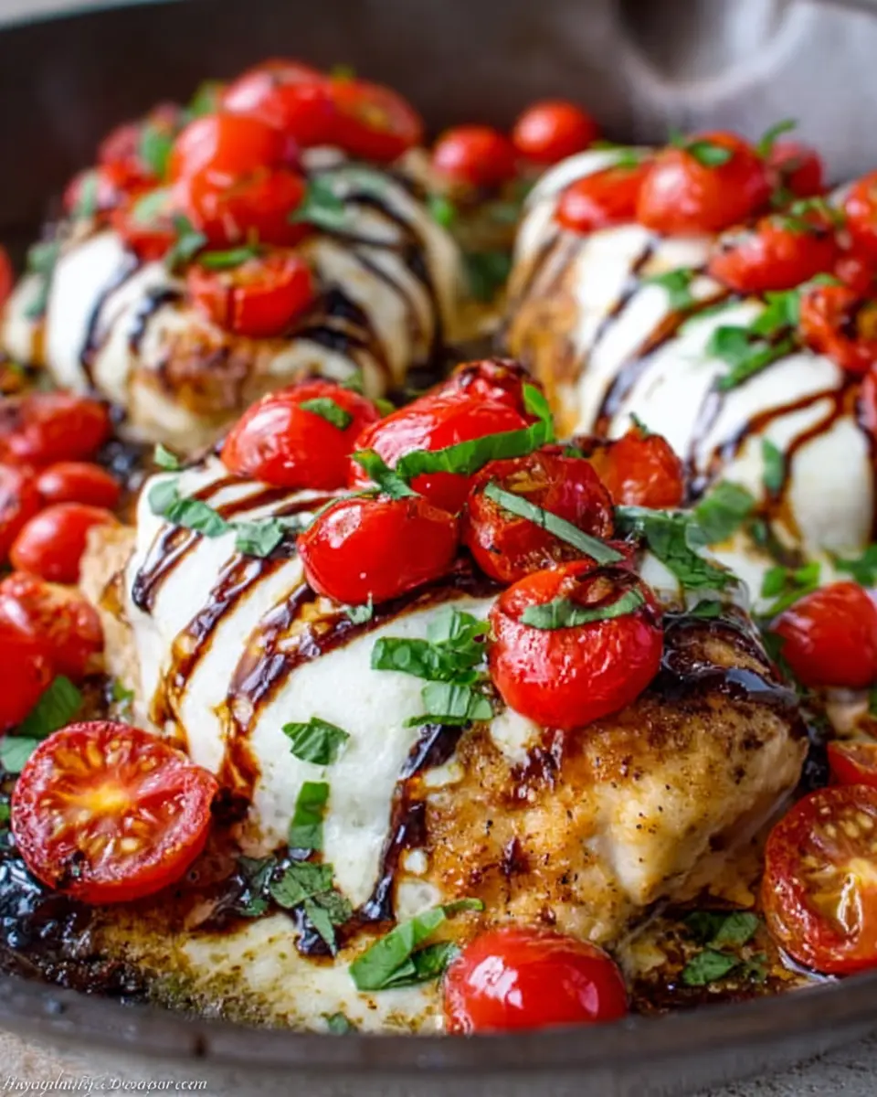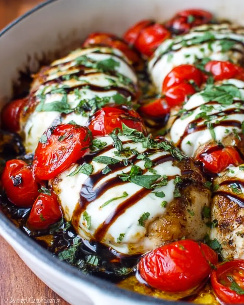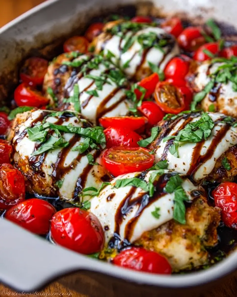 Keywords: Creamy Mozzarella Caprese Chicken Bake, Balsamic Drizzle, easy dinner