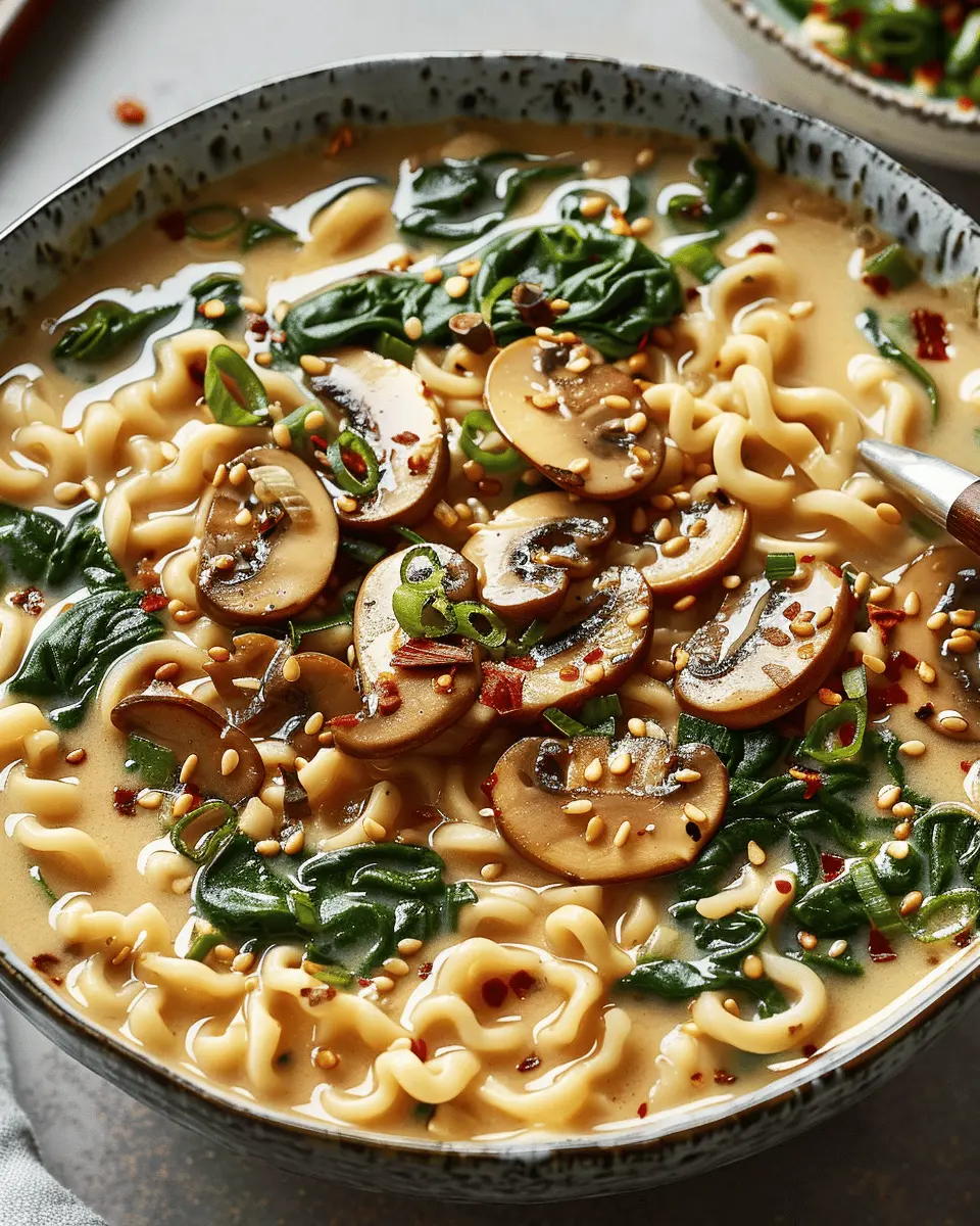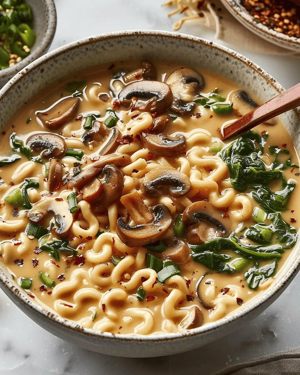The beauty of this recipe lies in its simplicity and speed. With only a handful of ingredients, you can have a deliciously rich and creamy bowl of ramen ready in about 30 minutes. Imagine slipping off your shoes after a long day and retreating to your kitchen, where the aroma of sautéed mushrooms and garlic fills the air. Doesn’t that sound comforting?