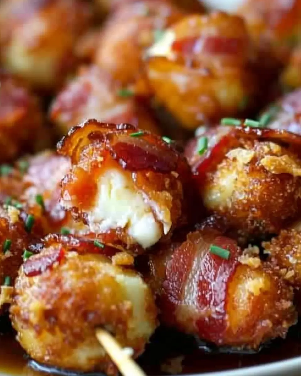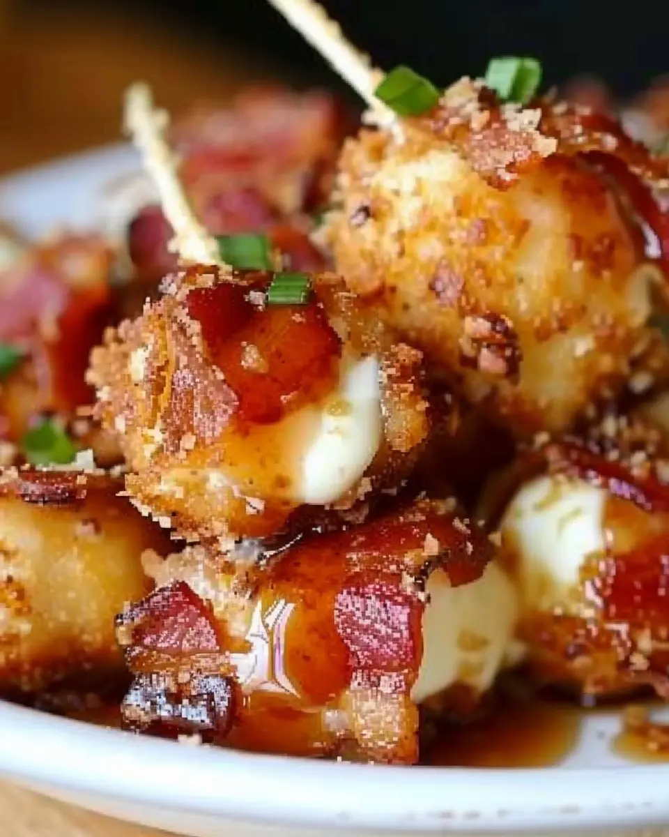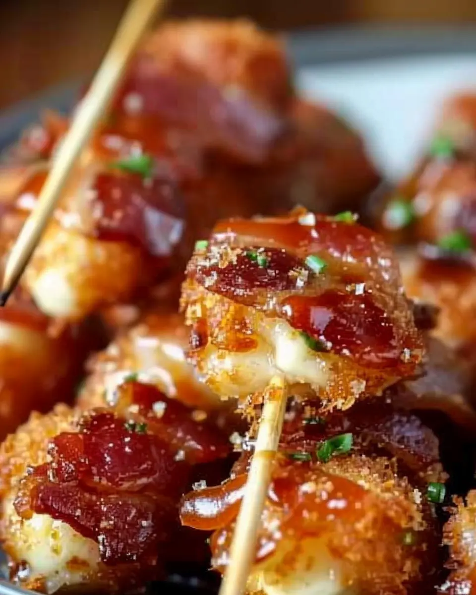 Keywords: Crispy Bacon Mozzarella Poppers, Sweet Maple Glaze, Appetizer Recipes