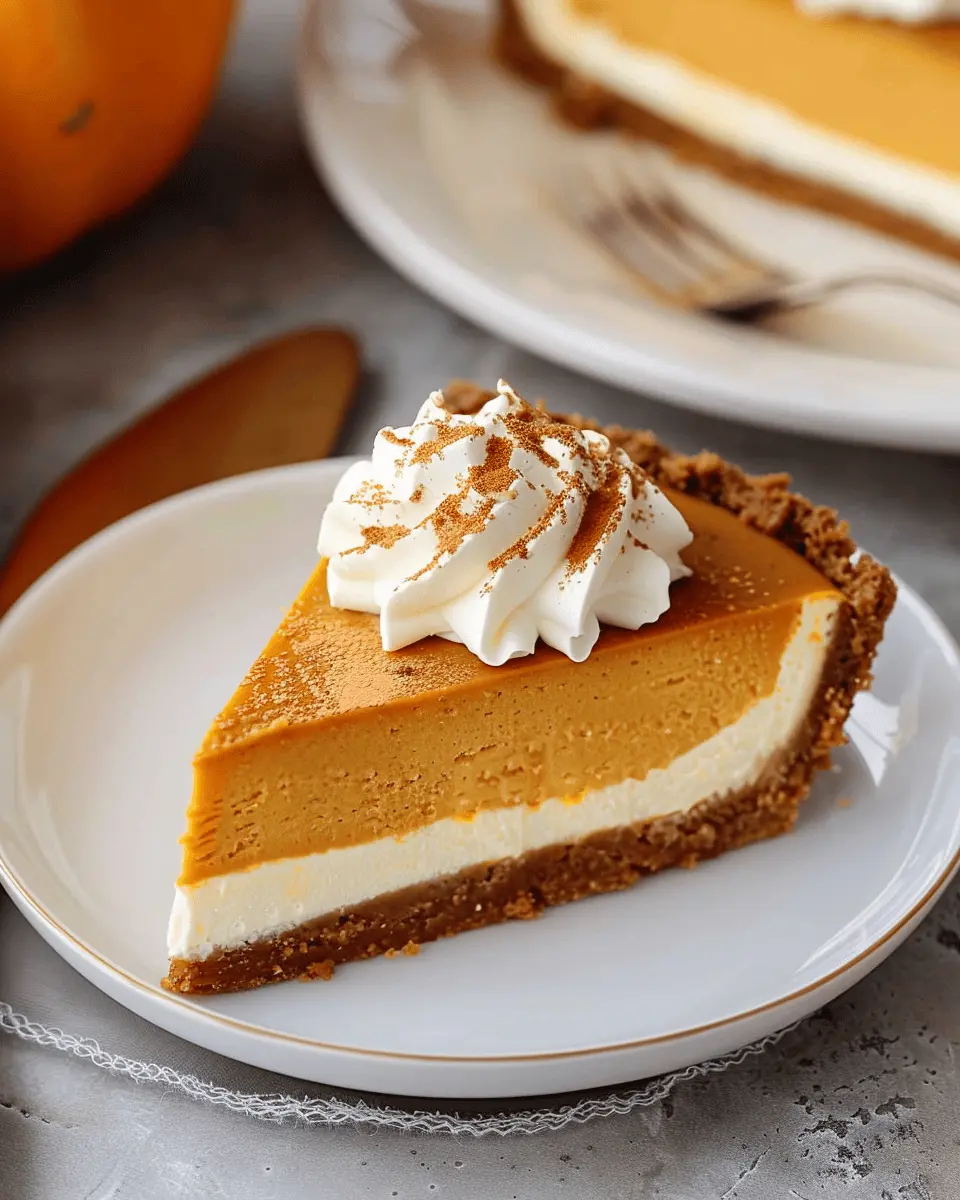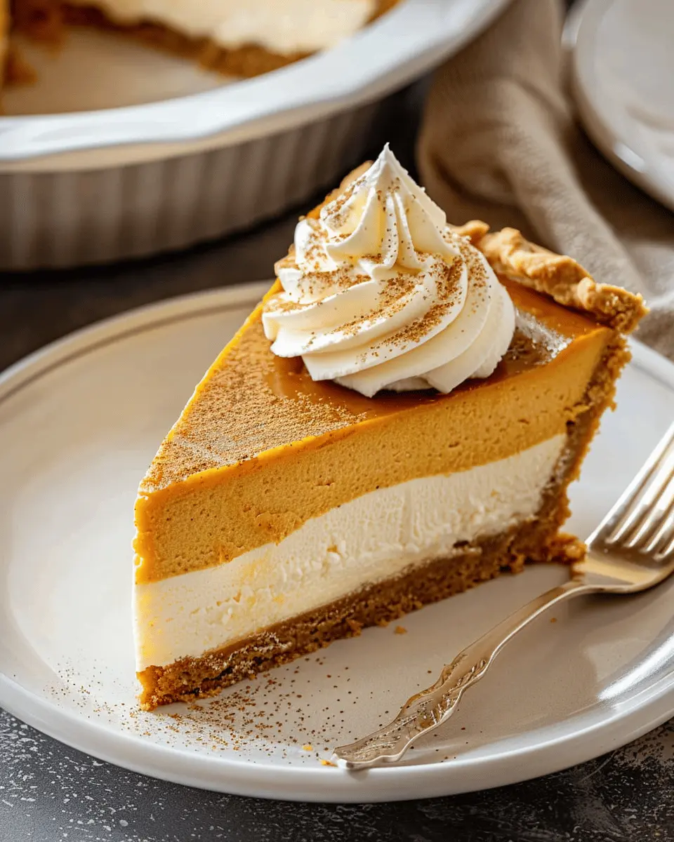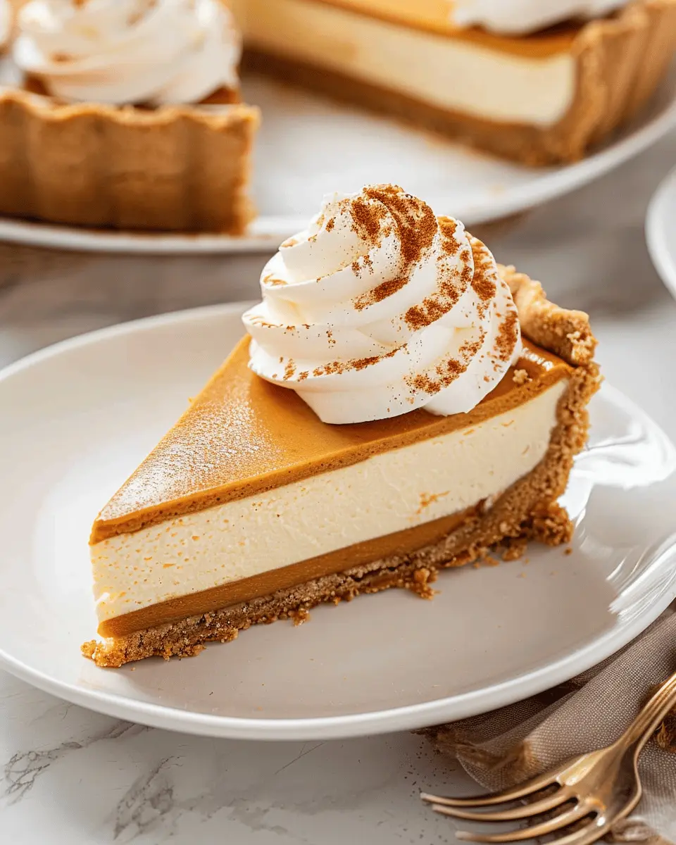 Indulge in the flavors of fall with this easy pumpkin pie cheesecake recipe that combines creamy cheesecake with spiced pumpkin pie filling.
