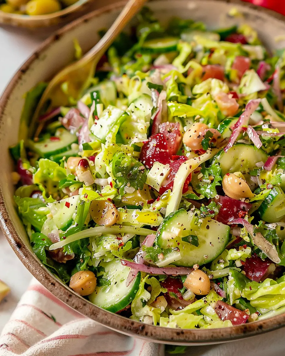 If you find yourself with extra Famous La Scala Chopped Salad, you’re in for a treat! Store the leftovers in an airtight container in the fridge for up to three days. Just keep in mind that the lettuce might wilt a bit, so it’s best to separate the dressing and ingredients when possible. This way, you can enjoy a fresh-tasting salad even on Day Two!