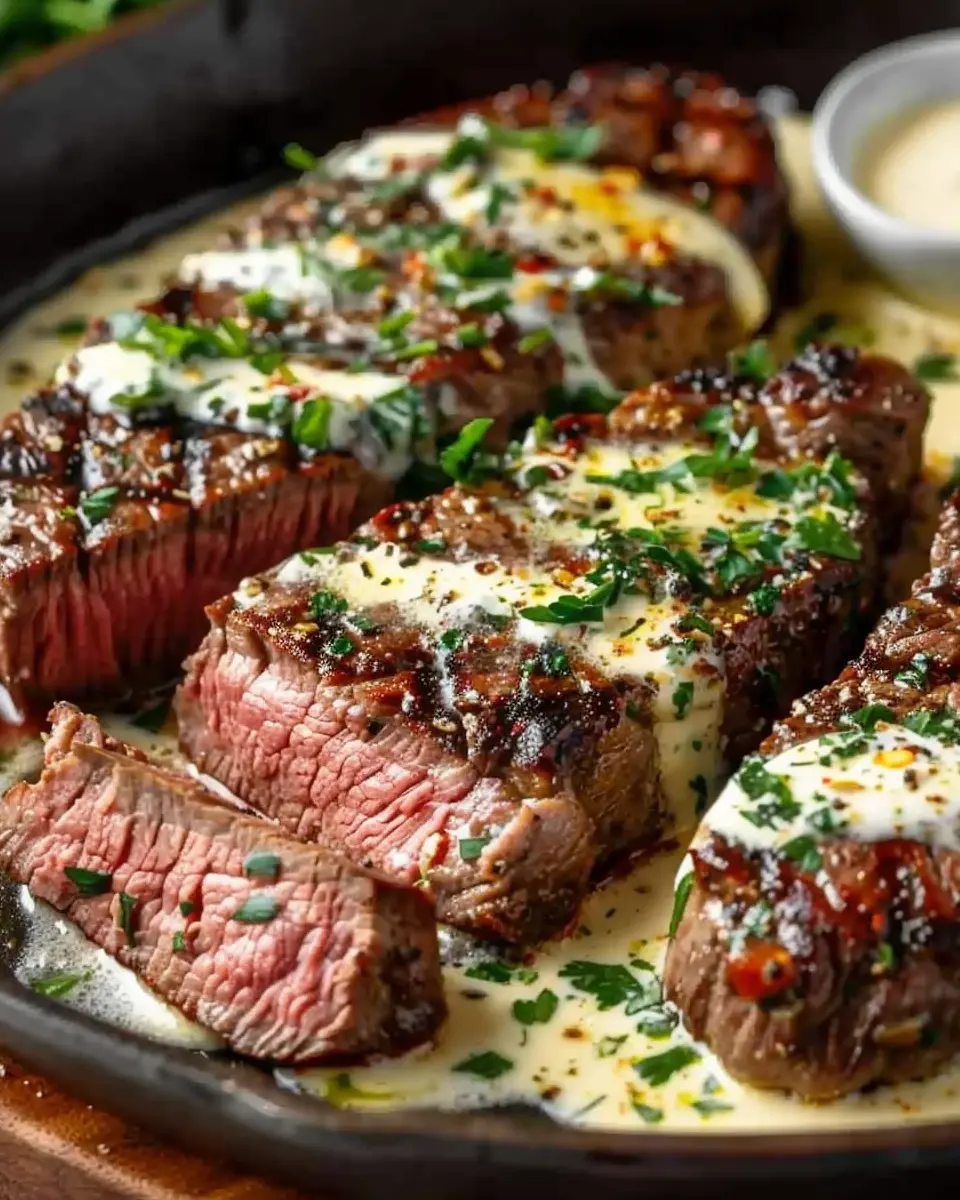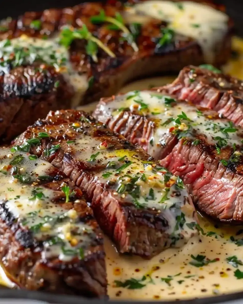 Keywords: Garlic Butter Steak, Parmesan Cream Sauce, Steak Recipe, Gourmet Steak