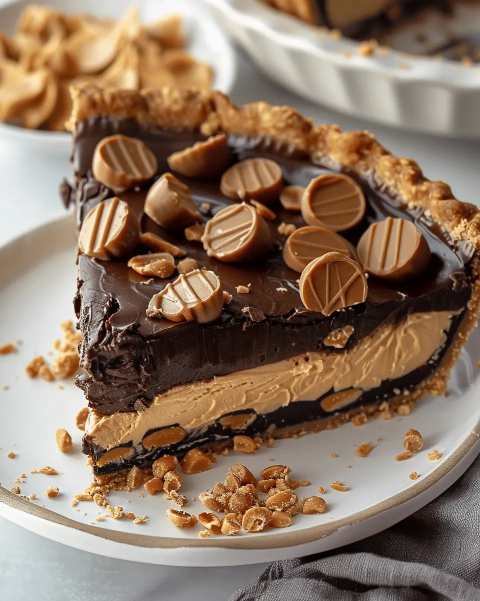Decadent Flavors: This pie combines the beloved flavors of peanut butter and chocolate, creating a harmonious blend that satisfies any sweet tooth. The gooey filling contrasts beautifully with the crunchy crust, leaving you wanting more after each bite.
