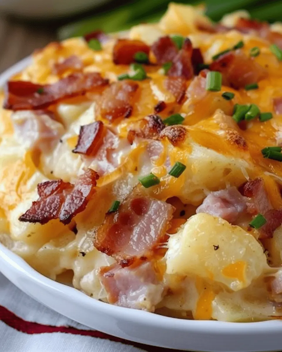 PrintHam Bacon Cheesy Potatoes: Indulgent Chicken Ham and Turkey Bacon Delight