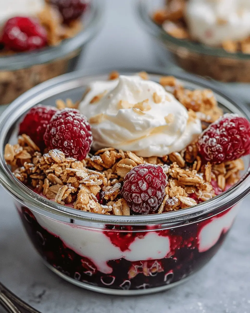 Once it’s out of the oven, let it cool for a few minutes before serving. This crumble is delightful on its own, but why not elevate it a notch? Top it off with a dollop of Greek yogurt for extra protein and creaminess, or perhaps a sprinkle of cinnamon for a warm flavor kick.