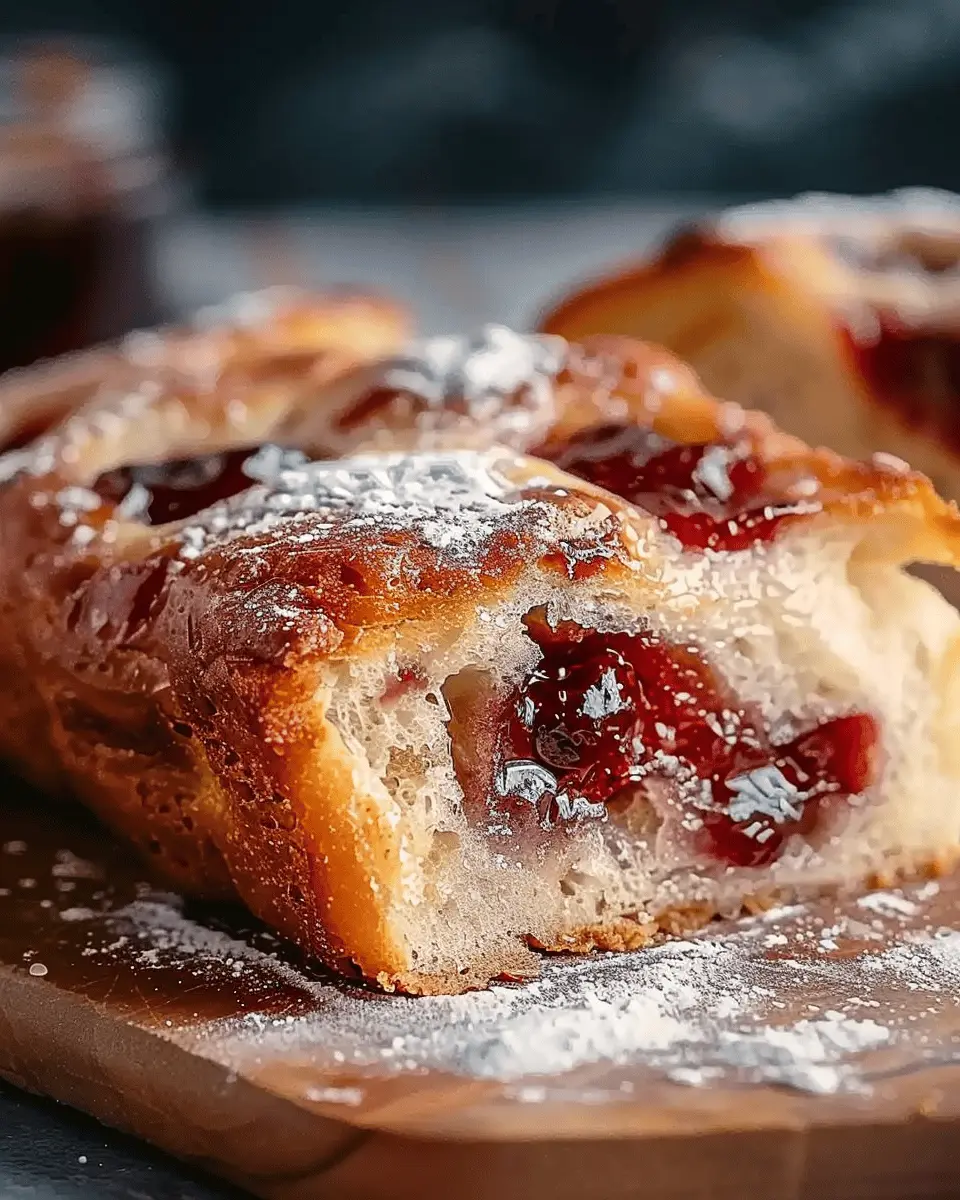 Serving your homemade jam donut focaccia warm elevates its sweetness and gooey goodness. For the best experience, slice it into manageable squares and dust with powdered sugar just before serving. This not only enhances the presentation but also adds to that delightful treat vibe. Consider warming individual slices in the oven for a few minutes to achieve that melt-in-your-mouth quality that everyone loves.