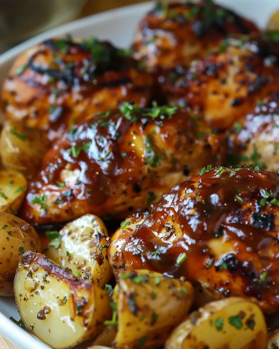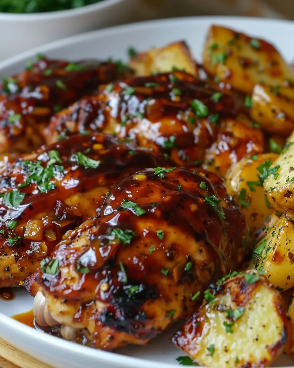 PrintHoney BBQ Chicken: Easy Dinner with Garlic Potatoes Recipe