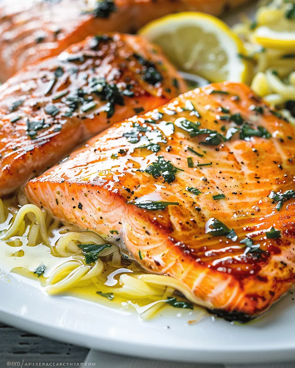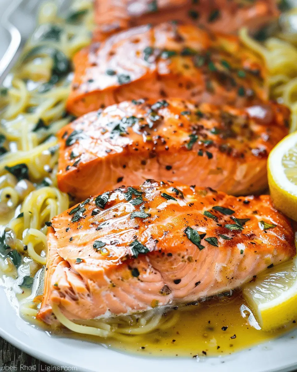 Delight in the rich, buttery flavor of lemon butter salmon, a dish that promises a juicy and satisfying dinner for any occasion.