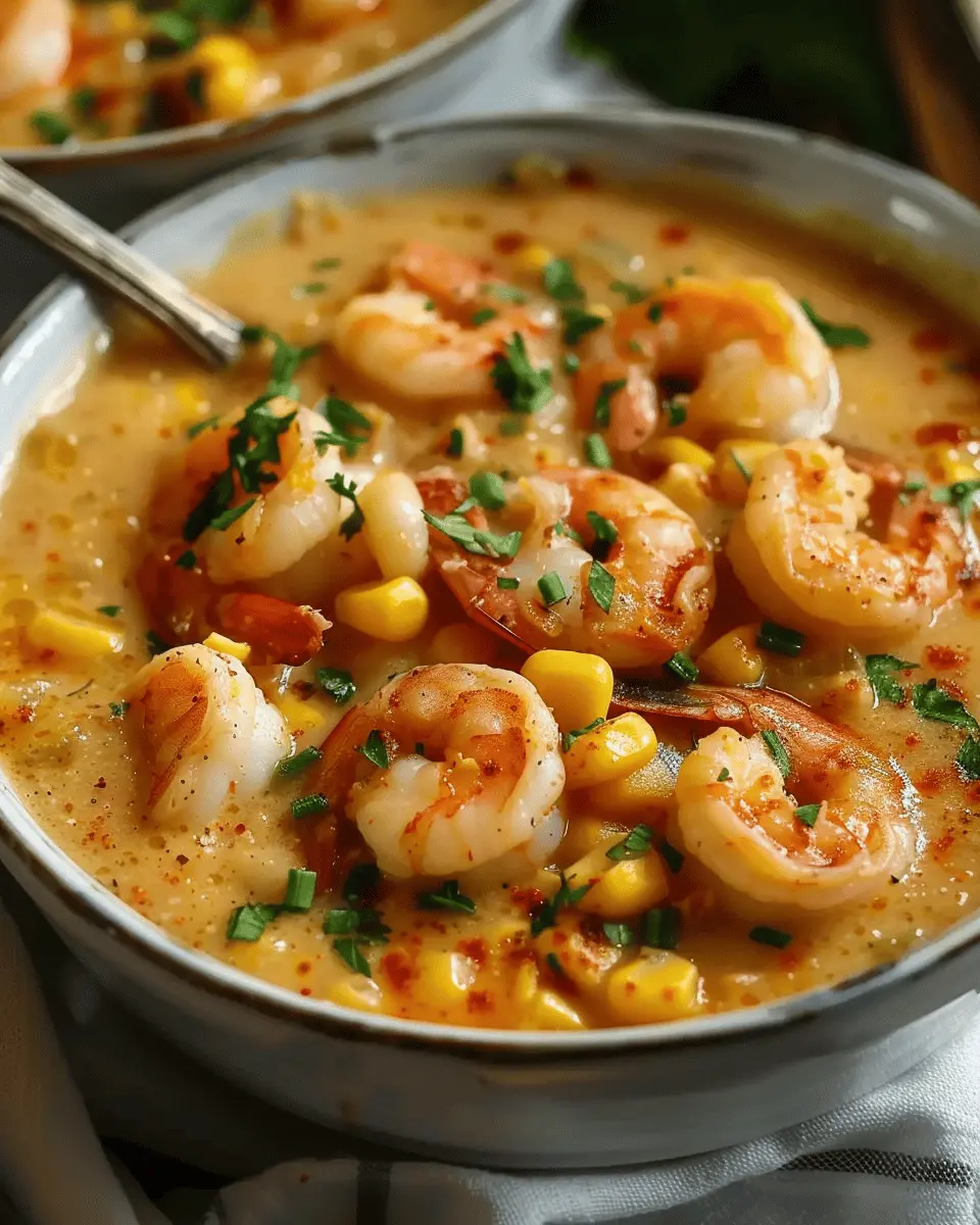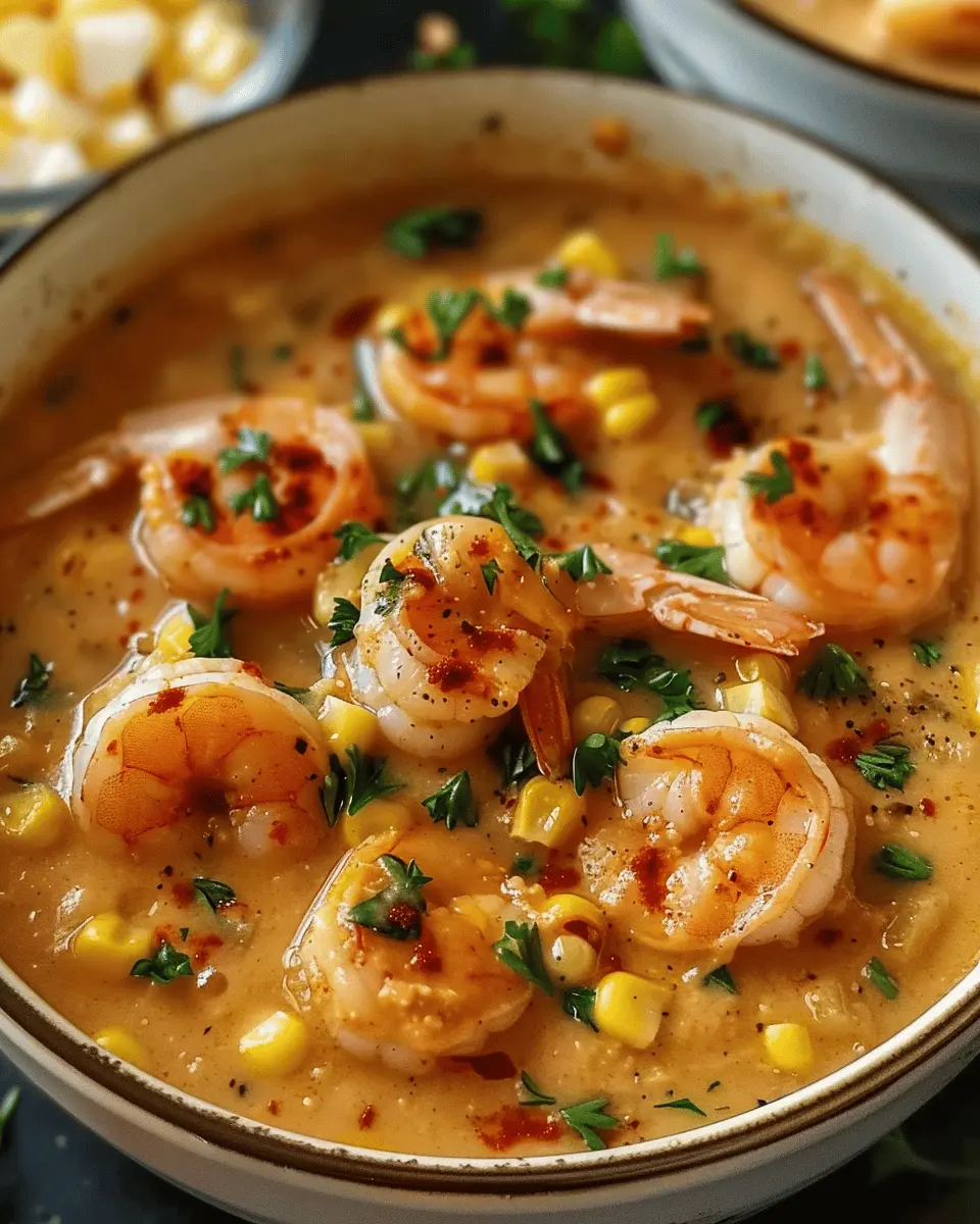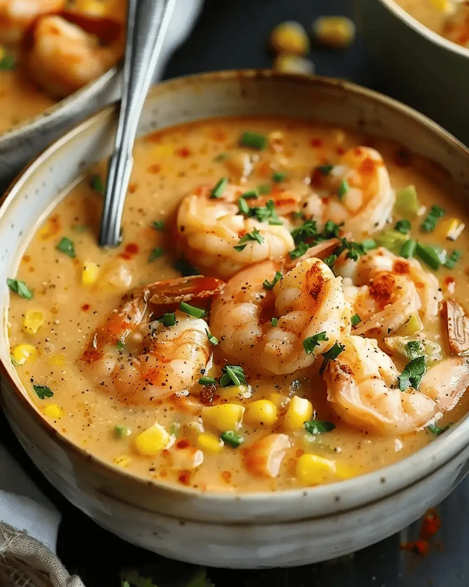 A rich and flavorful shrimp and corn bisque that warms the soul.