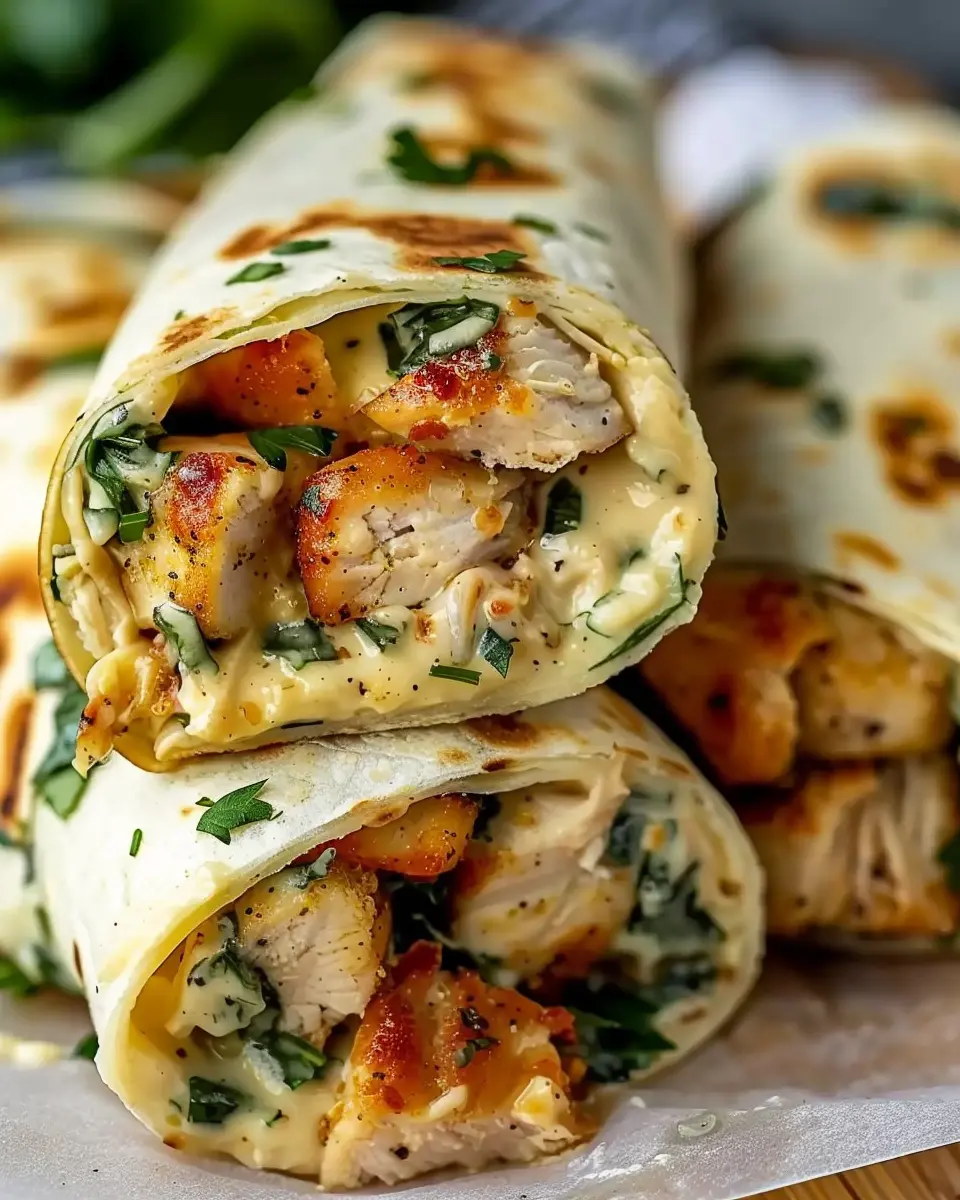 The cooking itself takes around 25 minutes. After you’ve sautéed the chicken and created that mouthwatering cheesy, garlicky sauce, it won’t be long before these wraps are ready to devour.
