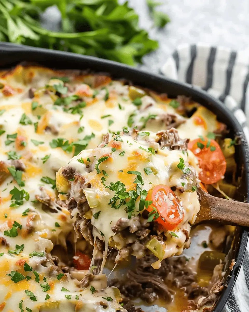 Presentation matters, especially when entertaining! A sprinkle of freshly chopped parsley or chives over your Low Carb Philly Cheese Steak Casserole adds a pop of color and an inviting aroma. For a touch of creaminess, consider a dollop of sour cream or a sprinkle of provolone cheese just before serving.