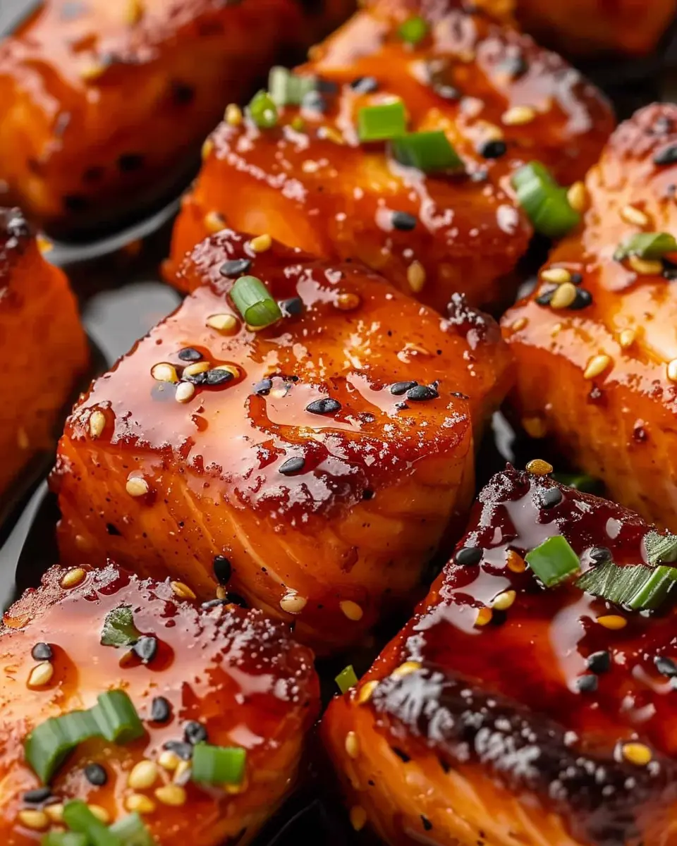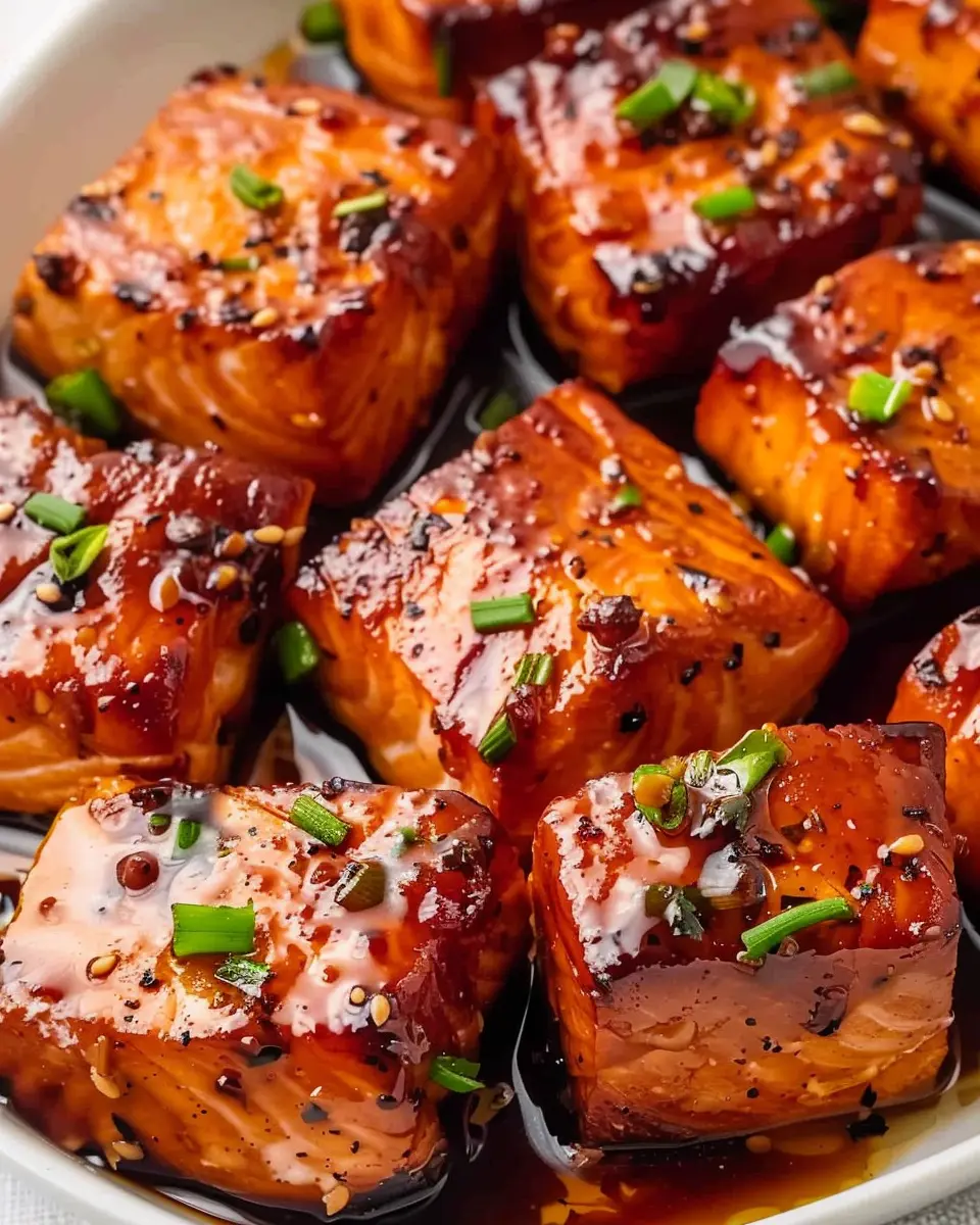 PrintMouthwatering Honey Garlic Salmon Bites Pampered with Turkey Bacon