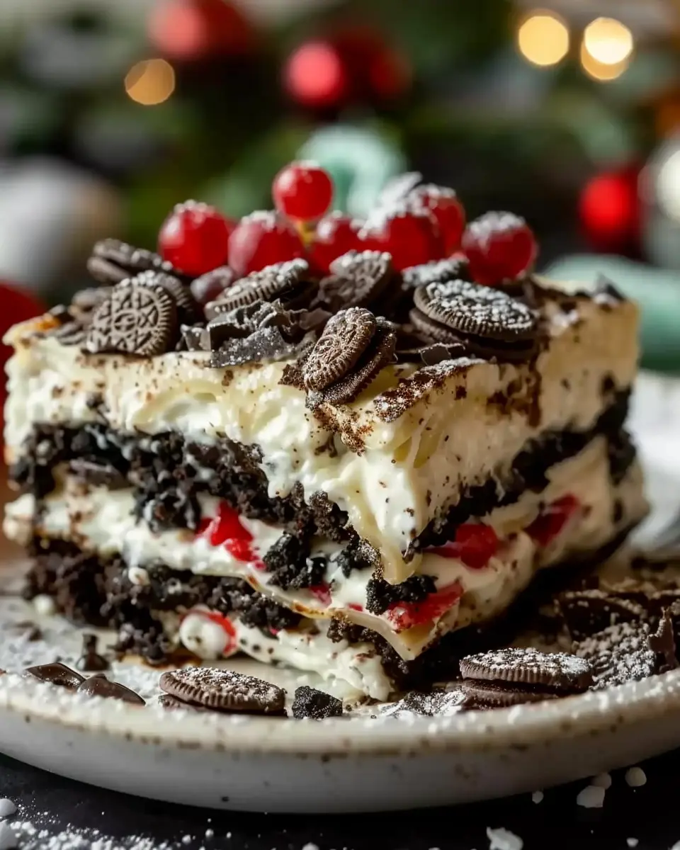 No-Bake Christmas Oreo Lasagna is a delightful dessert that combines creamy layers and the crunch of Oreos, perfect for the festive season.