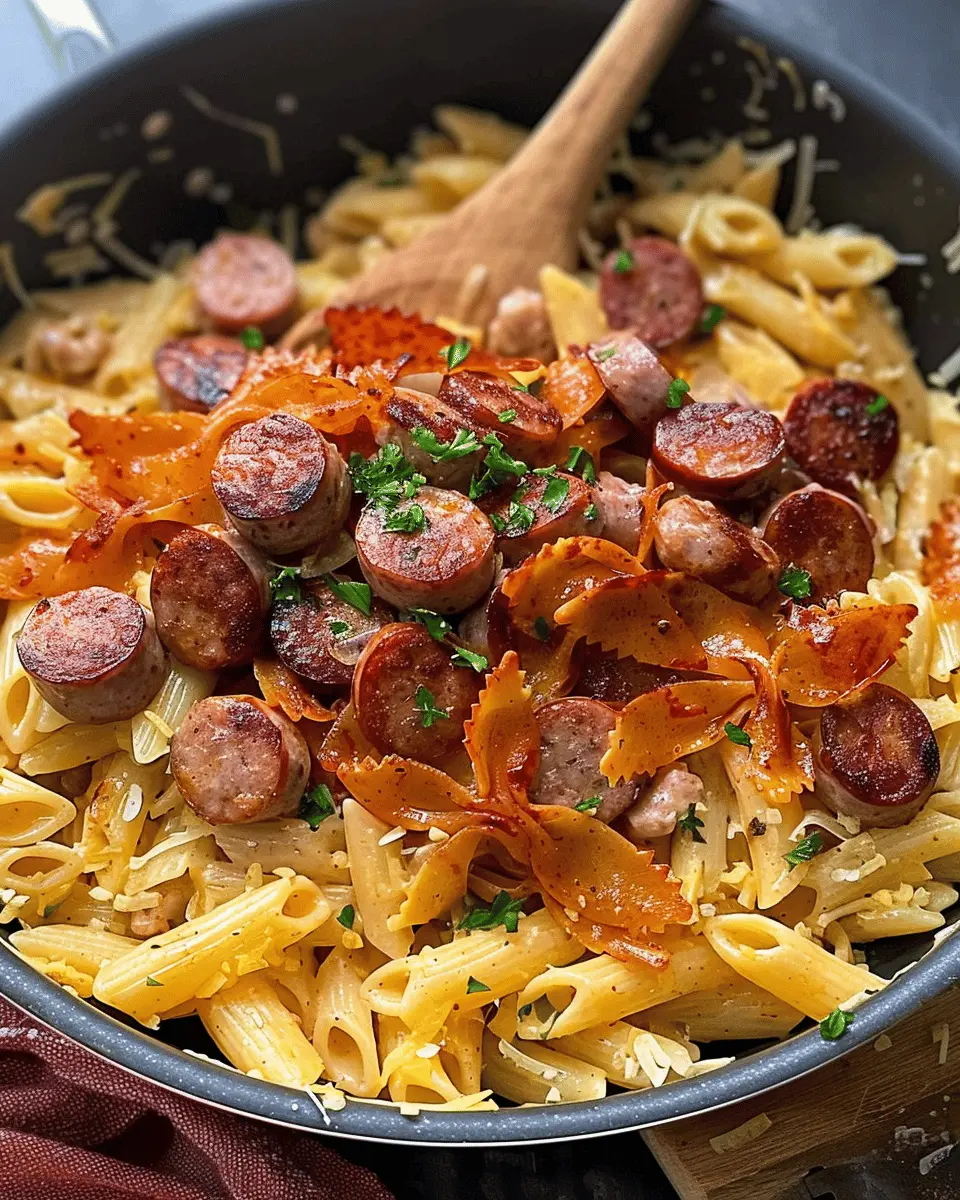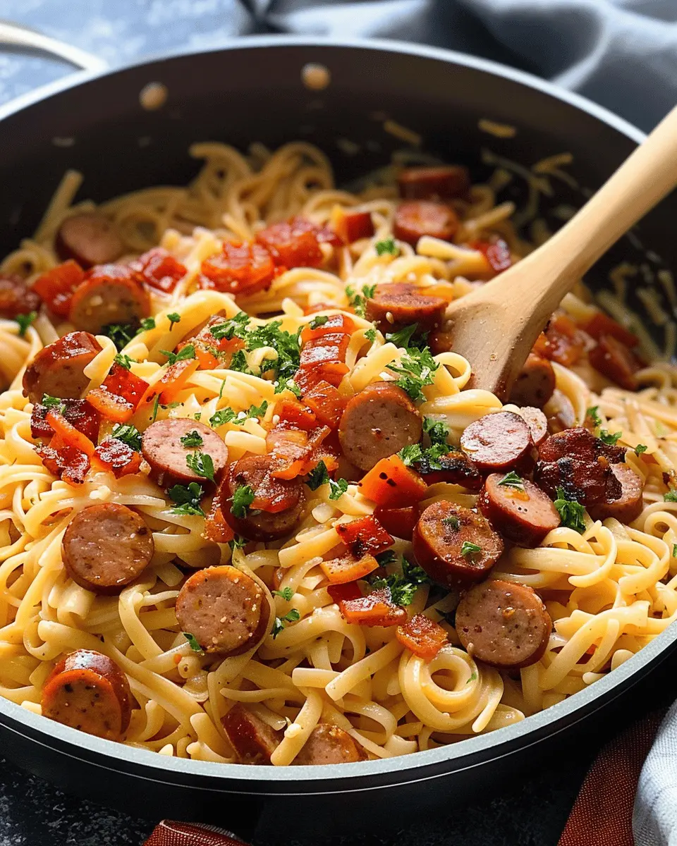 A delightful and creamy one pot pasta dish infused with Cajun flavors and hearty sausage.