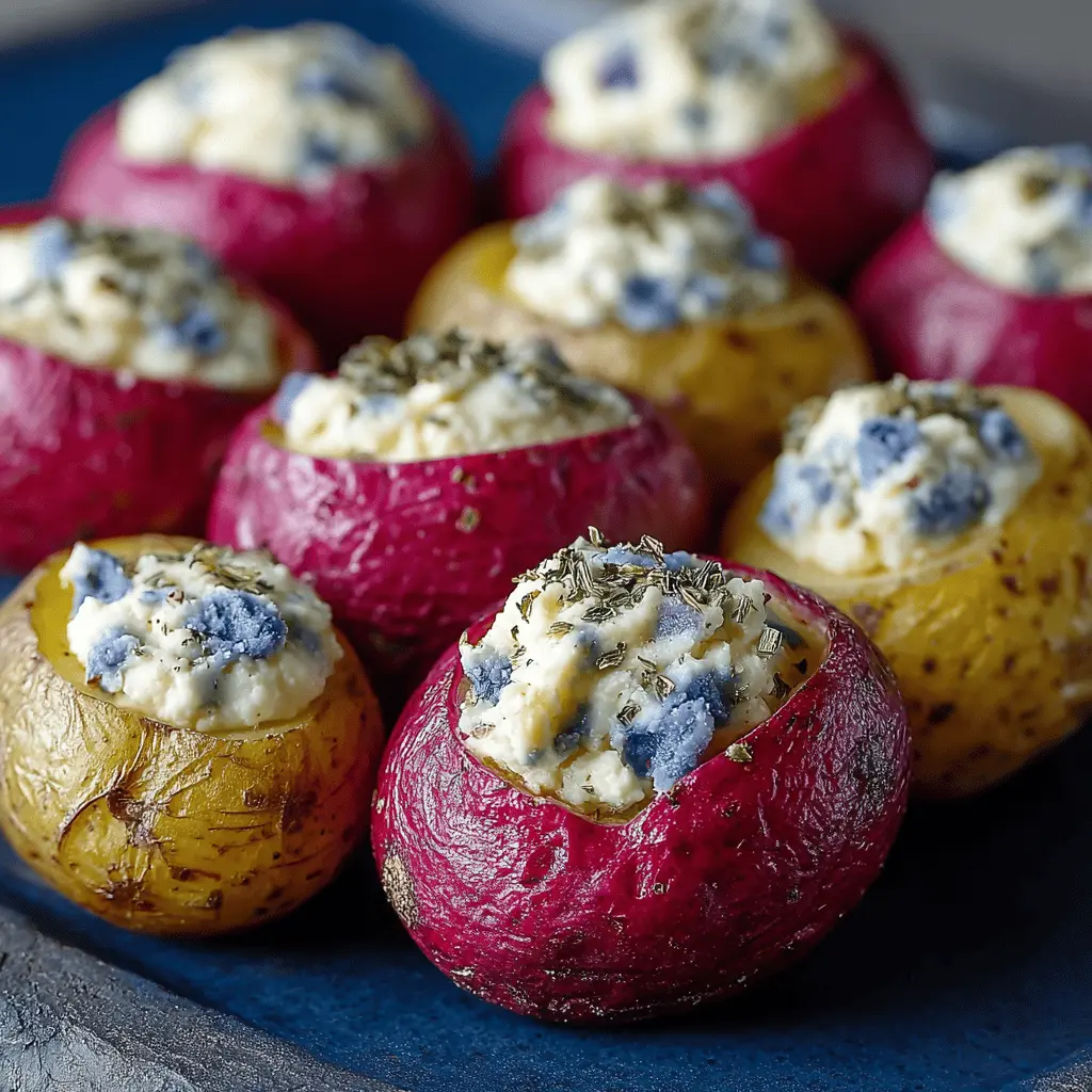 For a twist that’s both creamy and nutritious, try swapping out traditional fillings for a luscious avocado-based mixture. Simply mash ripe avocados with Greek yogurt, a squeeze of lime juice, and a pinch of salt. This not only adds a beautiful green hue but also offers a velvety texture that contrasts perfectly with the potato base. You might even sneak in some diced cherry tomatoes to accentuate the red and blue theme while adding a delightful freshness. Avocados are loaded with healthy fats and fiber, which makes this variation a guilt-free indulgence.