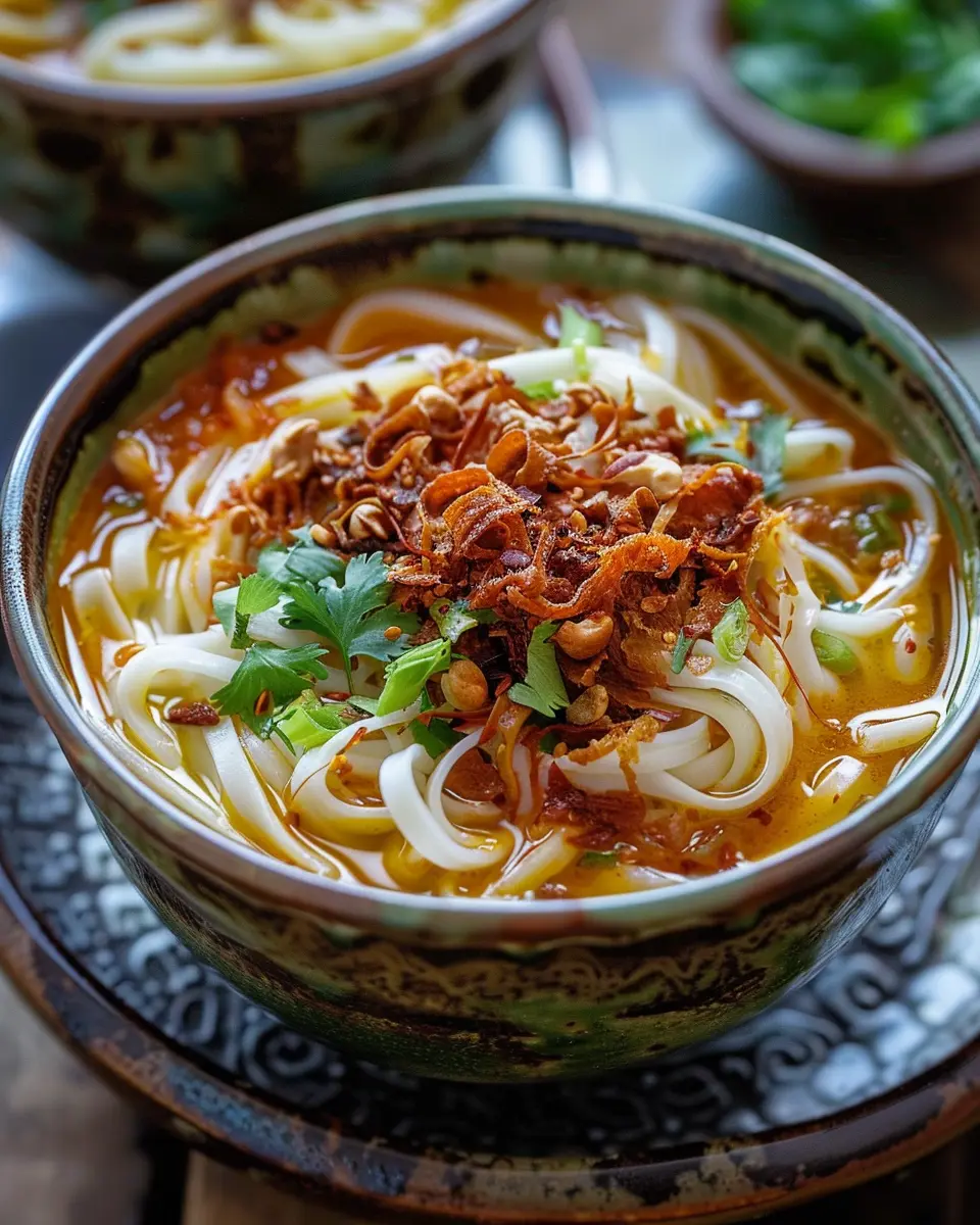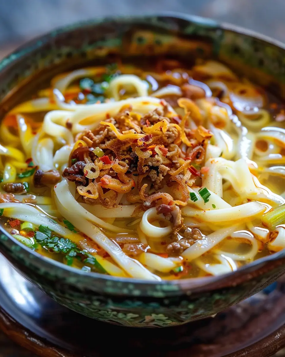 - Fried Onions: Crispy fried onions provide an excellent contrast to the soft noodles.