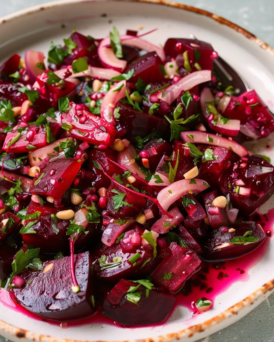 In summary, pickled beet salad is a delightful addition to any meal that brings both flavor and nutrition to your plate. The vibrant colors and earthy sweetness of beets make it a visually and palatably appealing dish, perfect for light lunches or as a side for dinner. This salad is also loaded with vitamins and minerals, making it a health-conscious choice for young professionals on the go.