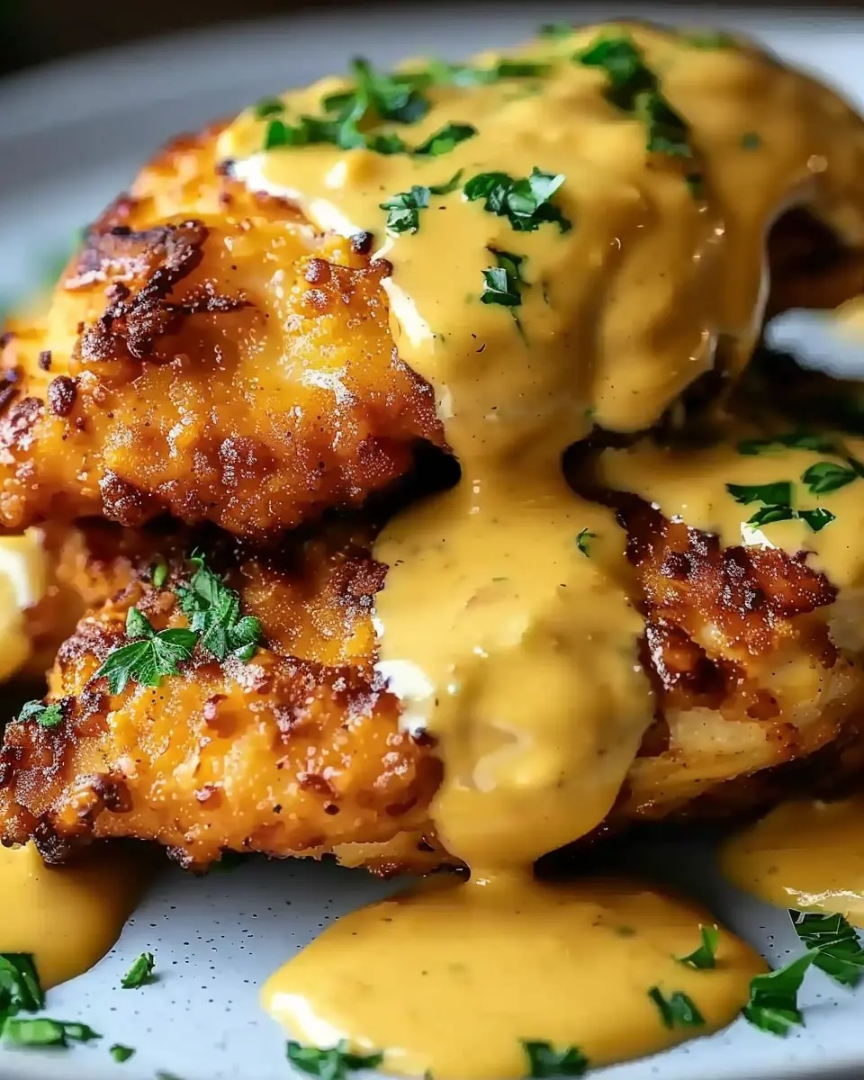 PrintPretzel Chicken: An Indulgent Recipe with Mustard-Cheddar Sauce