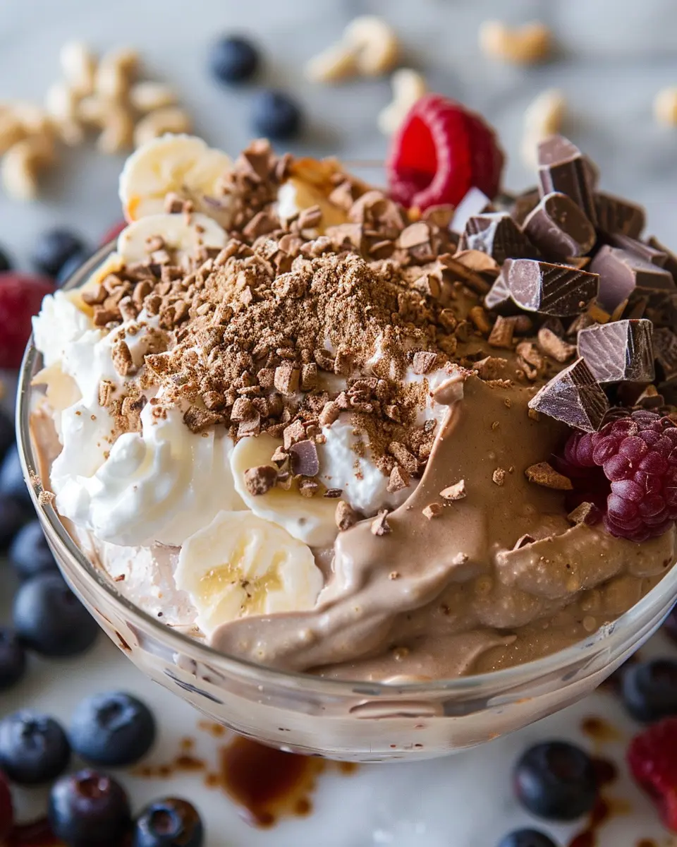 Blend it all up until smooth and watch the berries transform your protein fluff into a delightful pink treat. This variation is a fantastic way to add antioxidants to your diet and is perfect for warm days or breakfast.