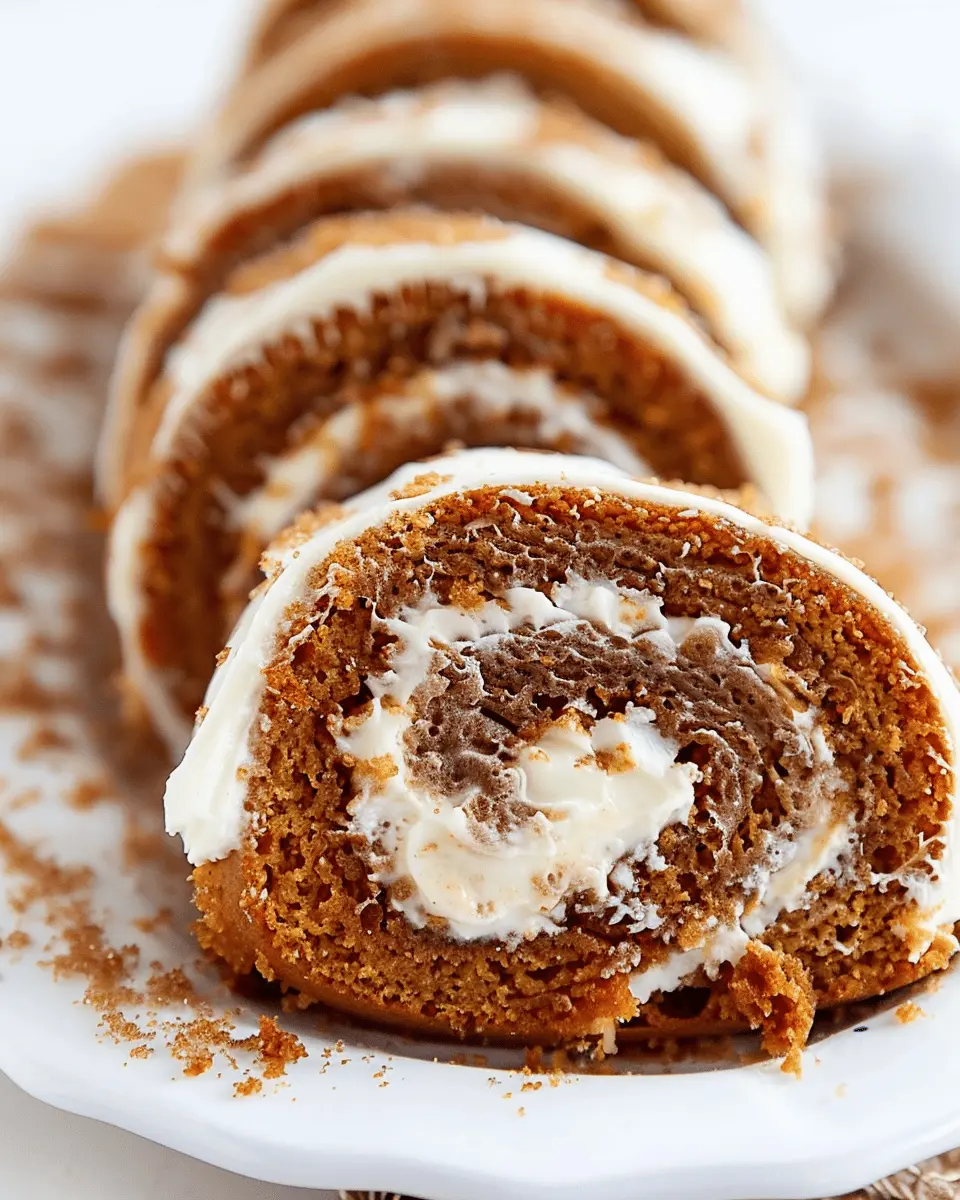 To ensure neat slices, consider freezing your pumpkin roll for about an hour before serving. This helps firm up the cake and makes cutting it a lot easier. When you’re ready to serve, simply slice into rounds and enjoy!
