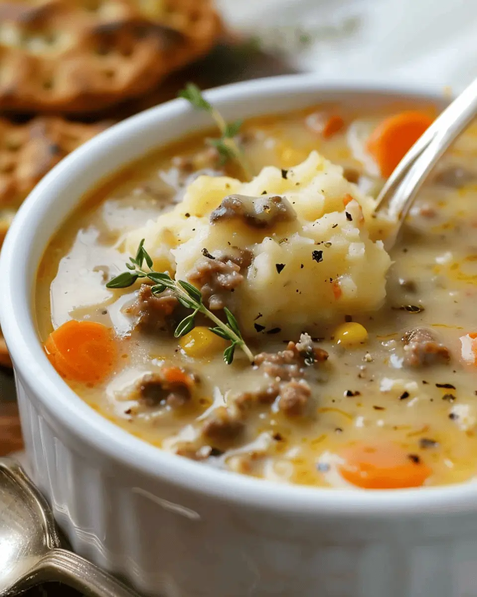 Summing up the comfort of homemade Shepherd’s Pie Soup