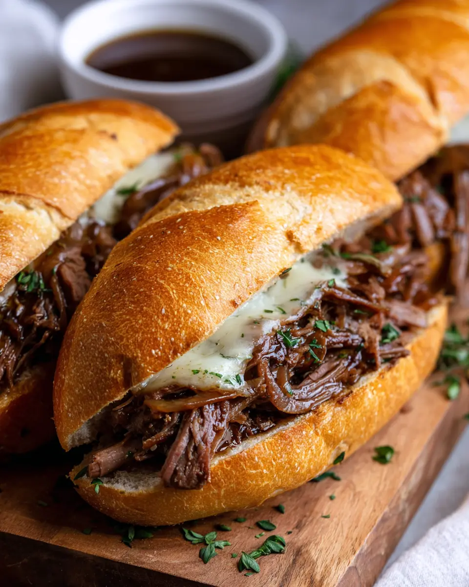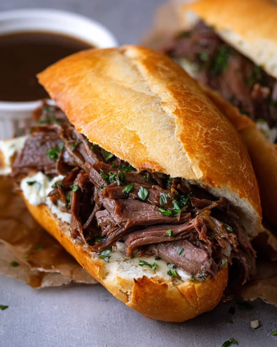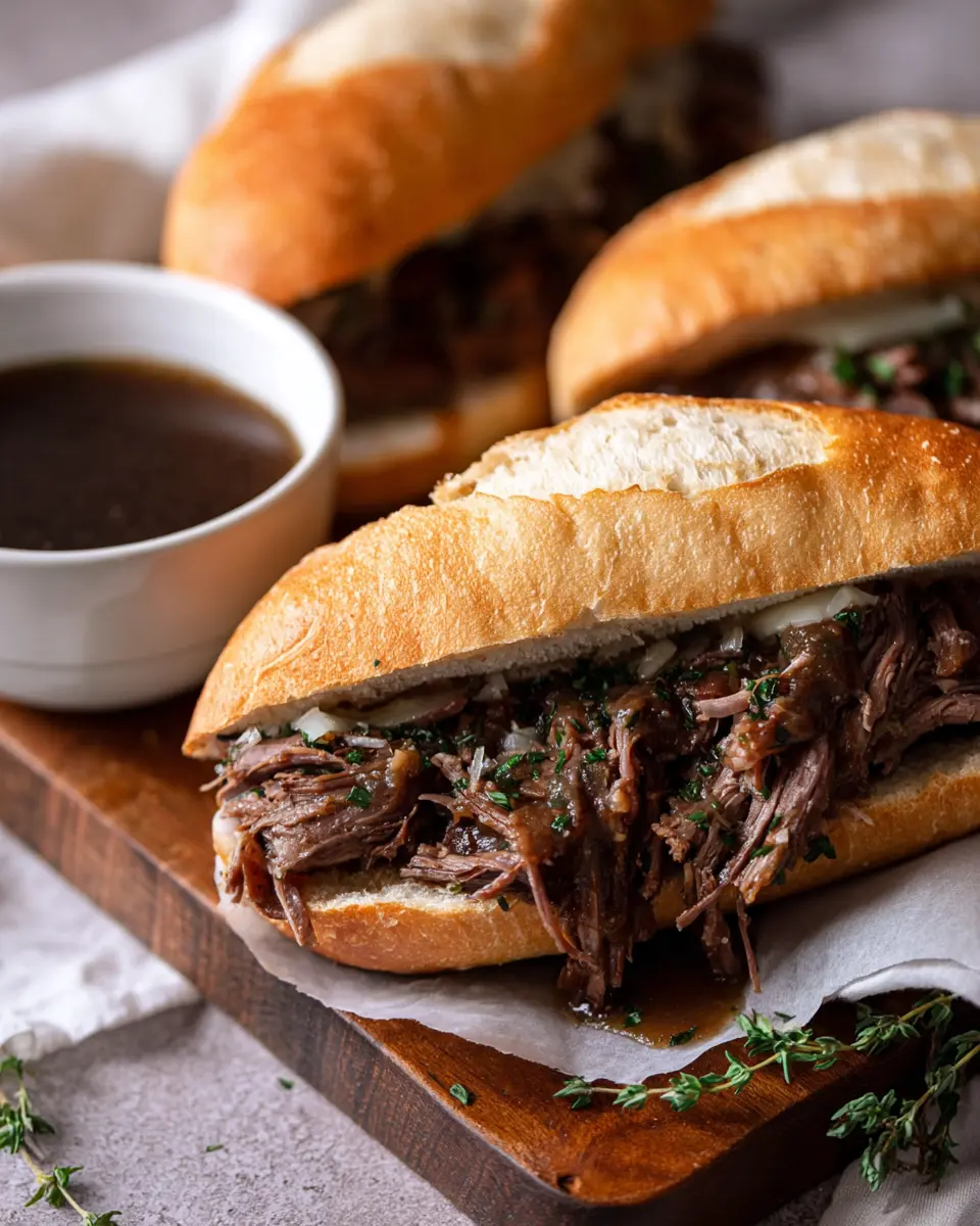 Enjoy the rich and savory flavors of slow-cooked beef in these delicious French dip sandwiches, perfect for any occasion.