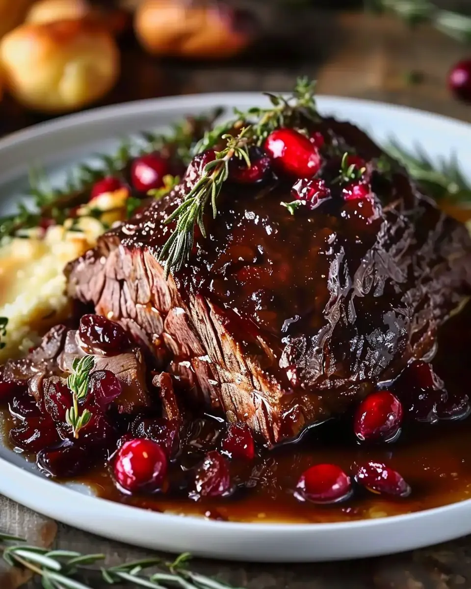 PrintSlow-Braised Beef Roast with Juicy Cranberry Balsamic Glaze