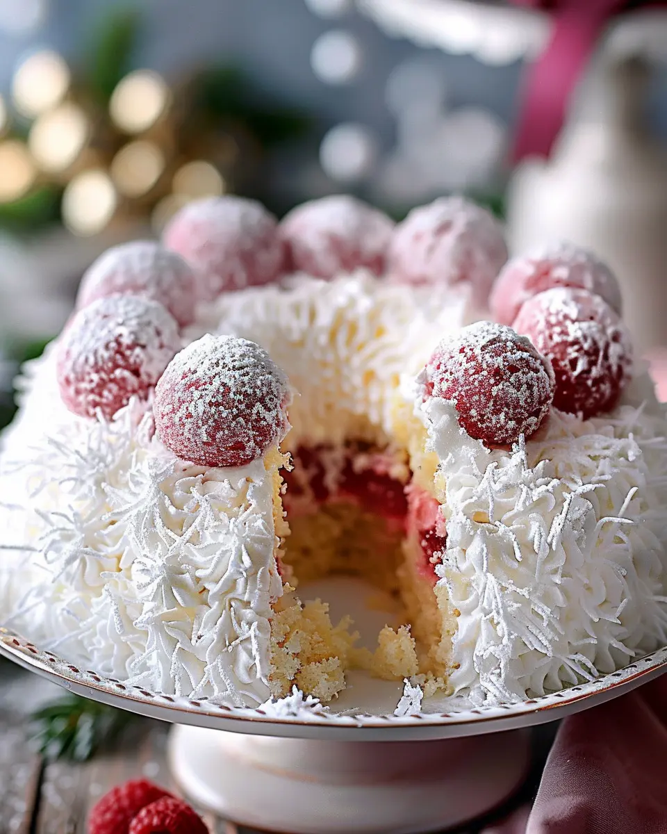 Indulge in the delightful layers of this snowball cake, perfect for any celebration.