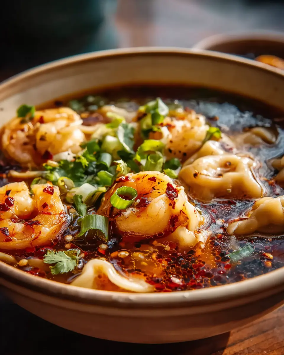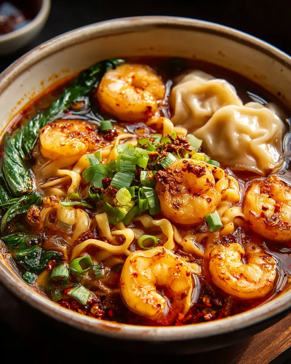 Spicy Shrimp Dumpling Noodle Soup: A Comforting Delight
