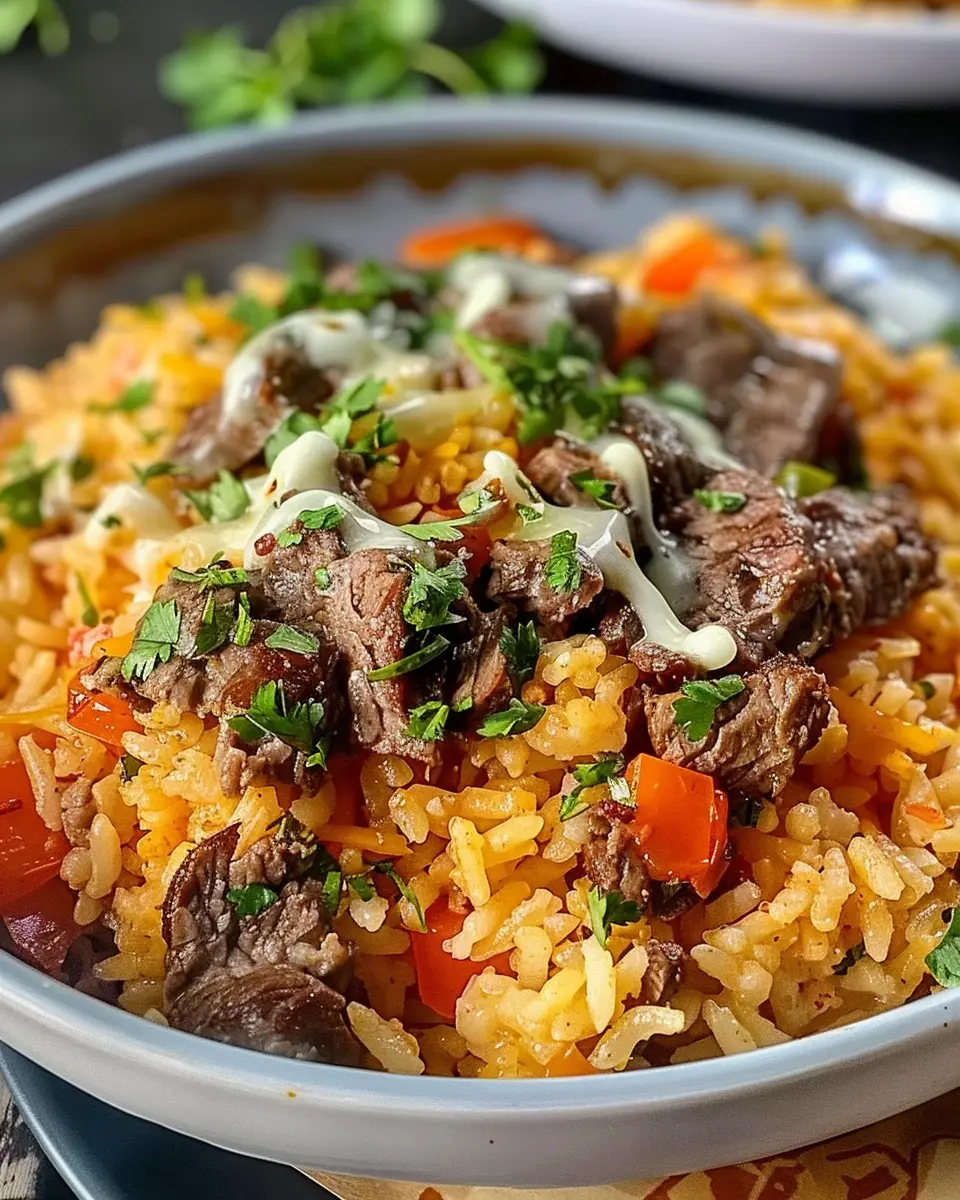 Keywords: Steak Queso Rice, easy recipe, flavorful dish, food lovers